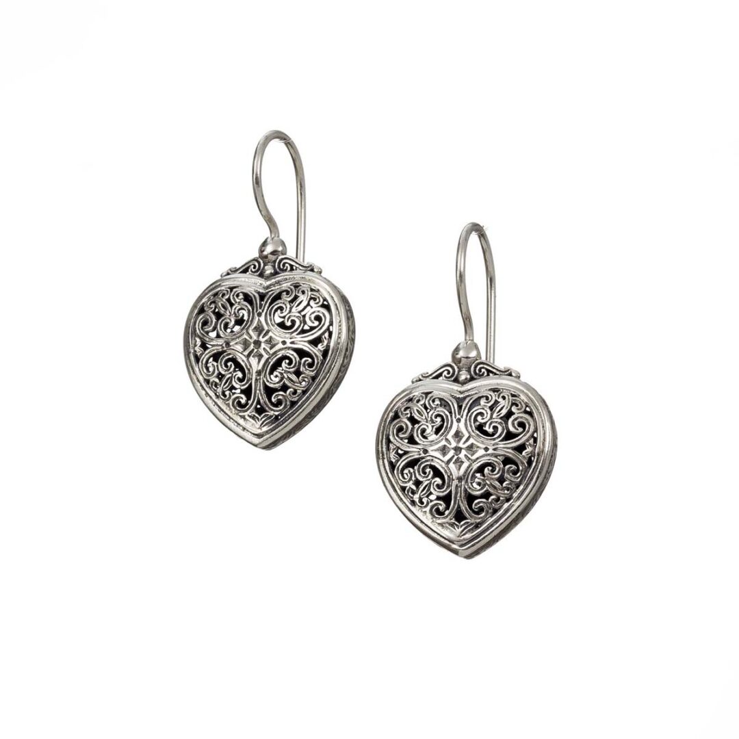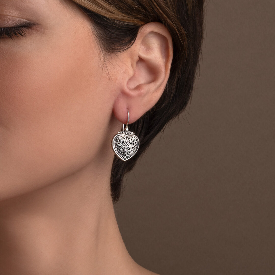 Heart earrings in sterling silver, decorated with filigree, handcrafted with the finest attention to detail.