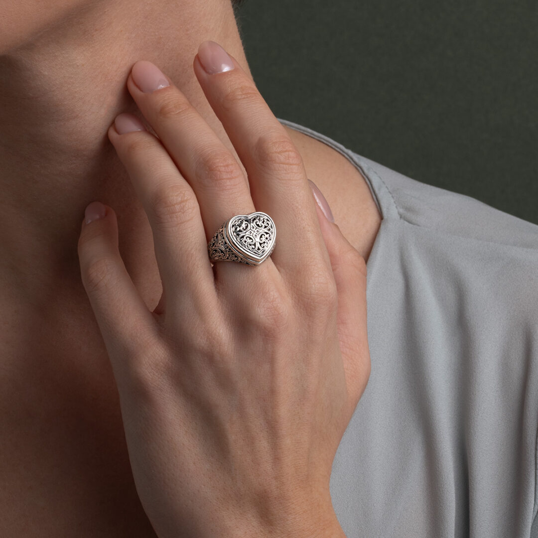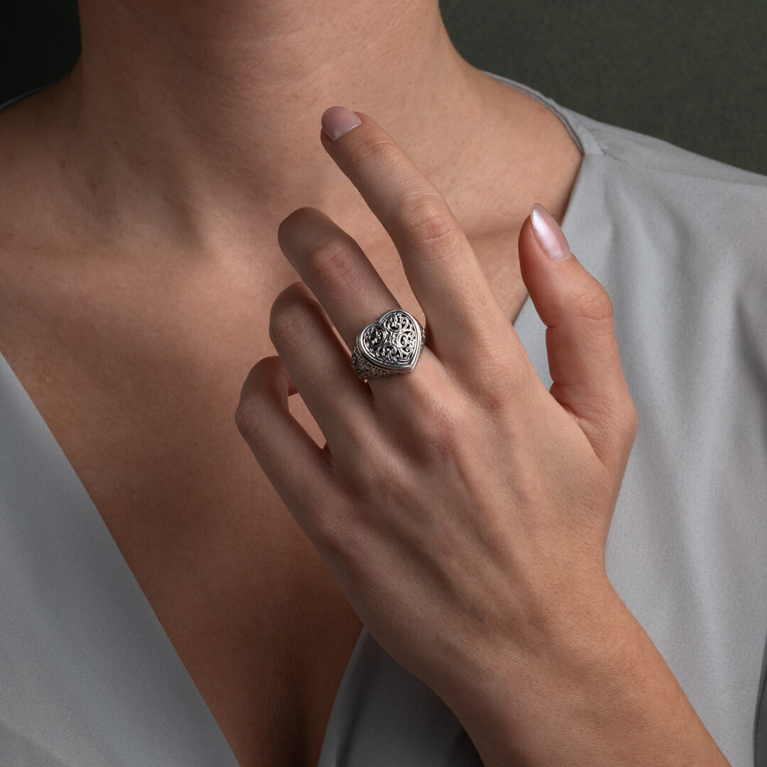 Heart ring in silver 925, decorated with filigree, handcrafted with the finest attention to detail.