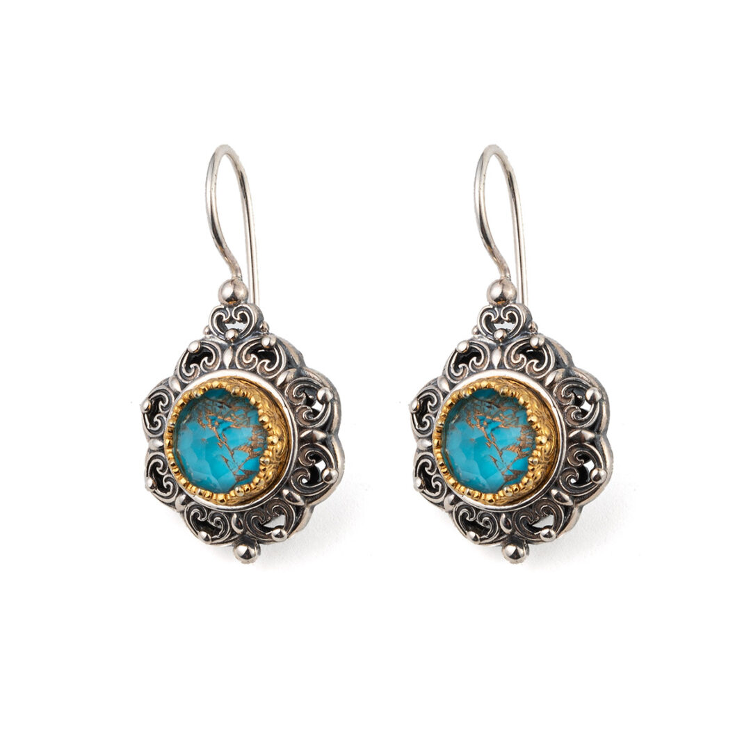 Earrings in Sterling Silver with Gold plated parts and doublet stones.