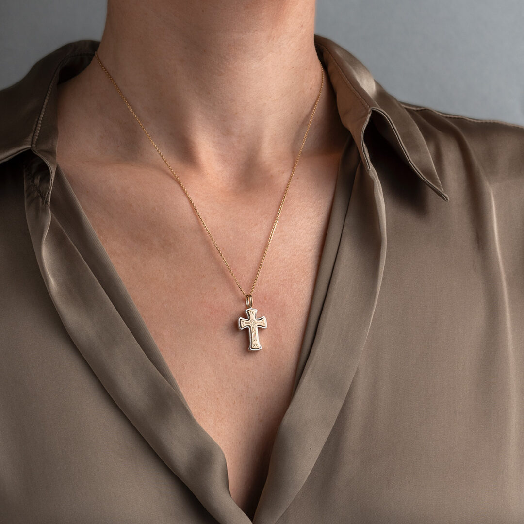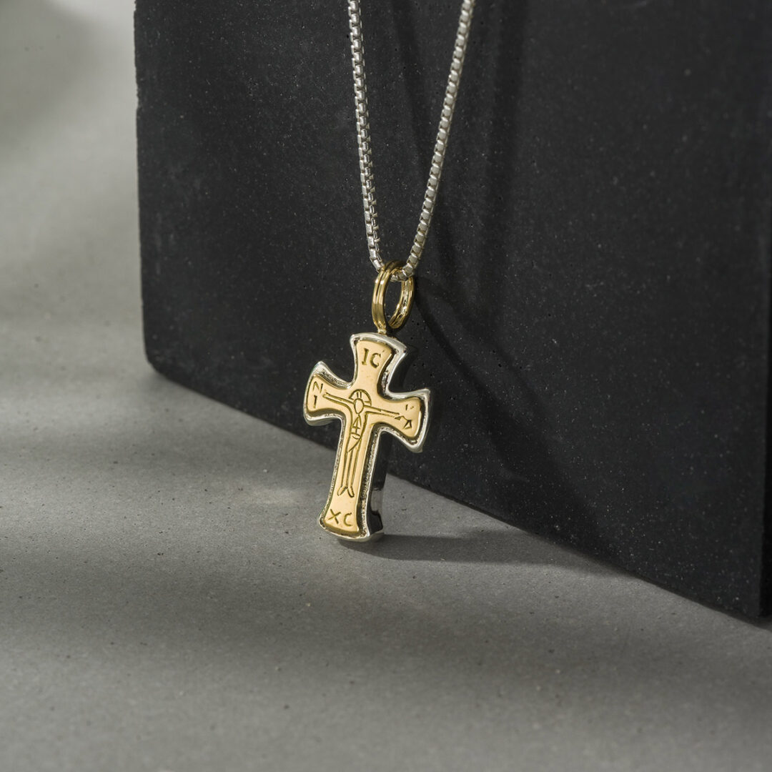 Gerochristo – Tiny Byzantine cross in 18K Gold and Sterling Silver