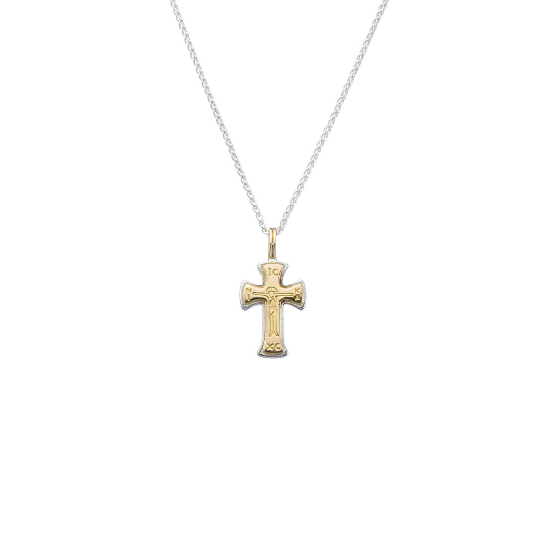 IC XC NI KA tiny cross in 18K solid Yellow Gold and sterling silver.