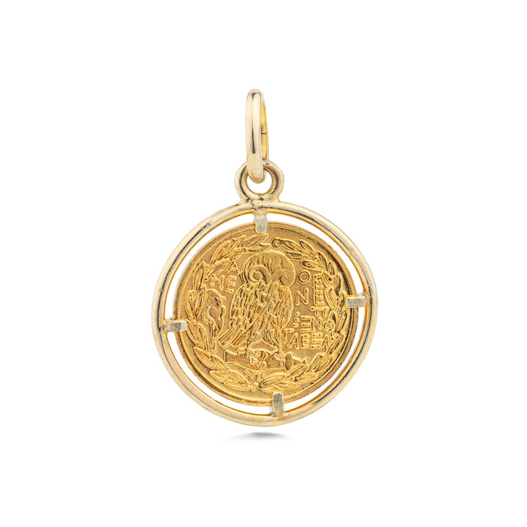 Goddess Athena and Owl Coin Pendant – 14K Gold