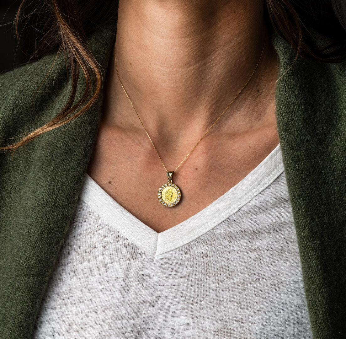 Goddess Athena and Owl Pendant with Crystals – 14K Solid Gold