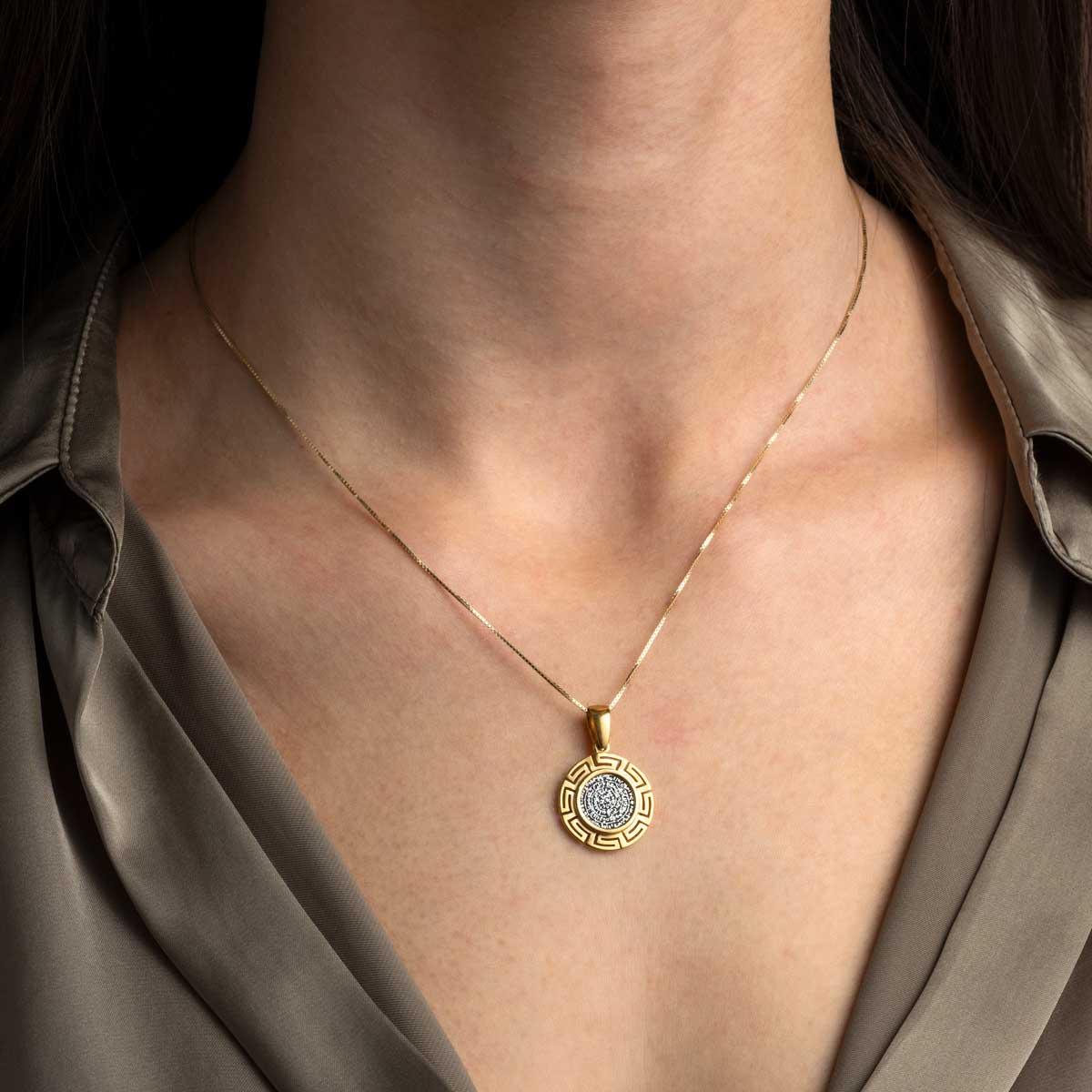 Phaistos Greek Key Pendant 925 Sterling Silver Gold Plated