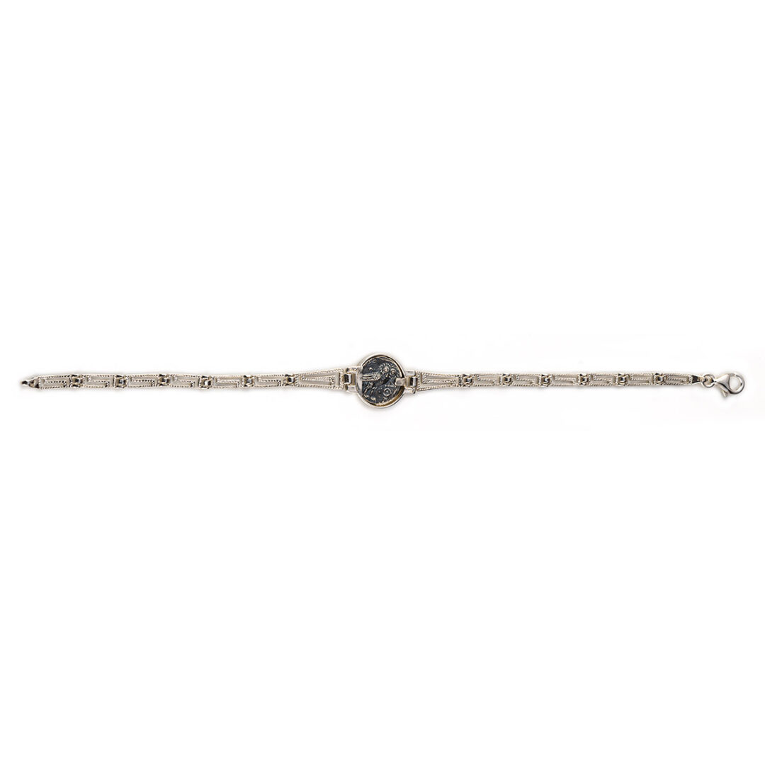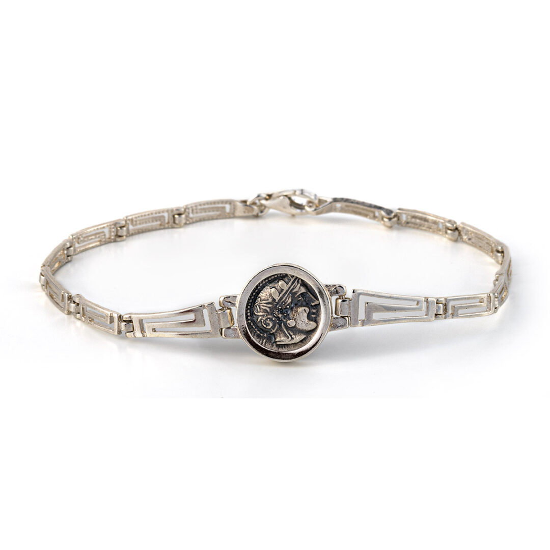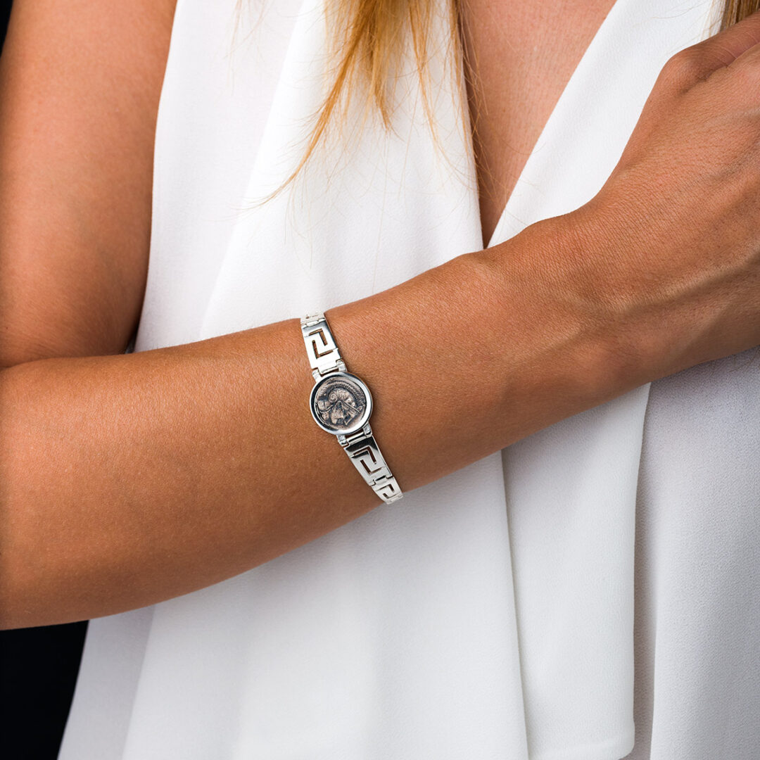 Goddess Athena Coin Link Bracelet –925 Sterling Silver