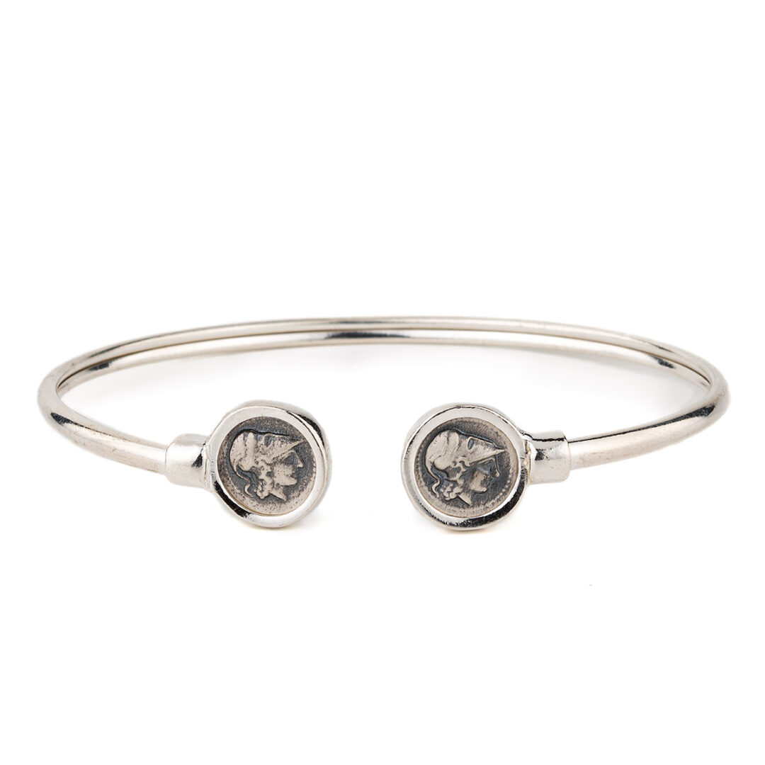Goddess Athena Coin Cuff Bracelet – 925 Sterling Silver