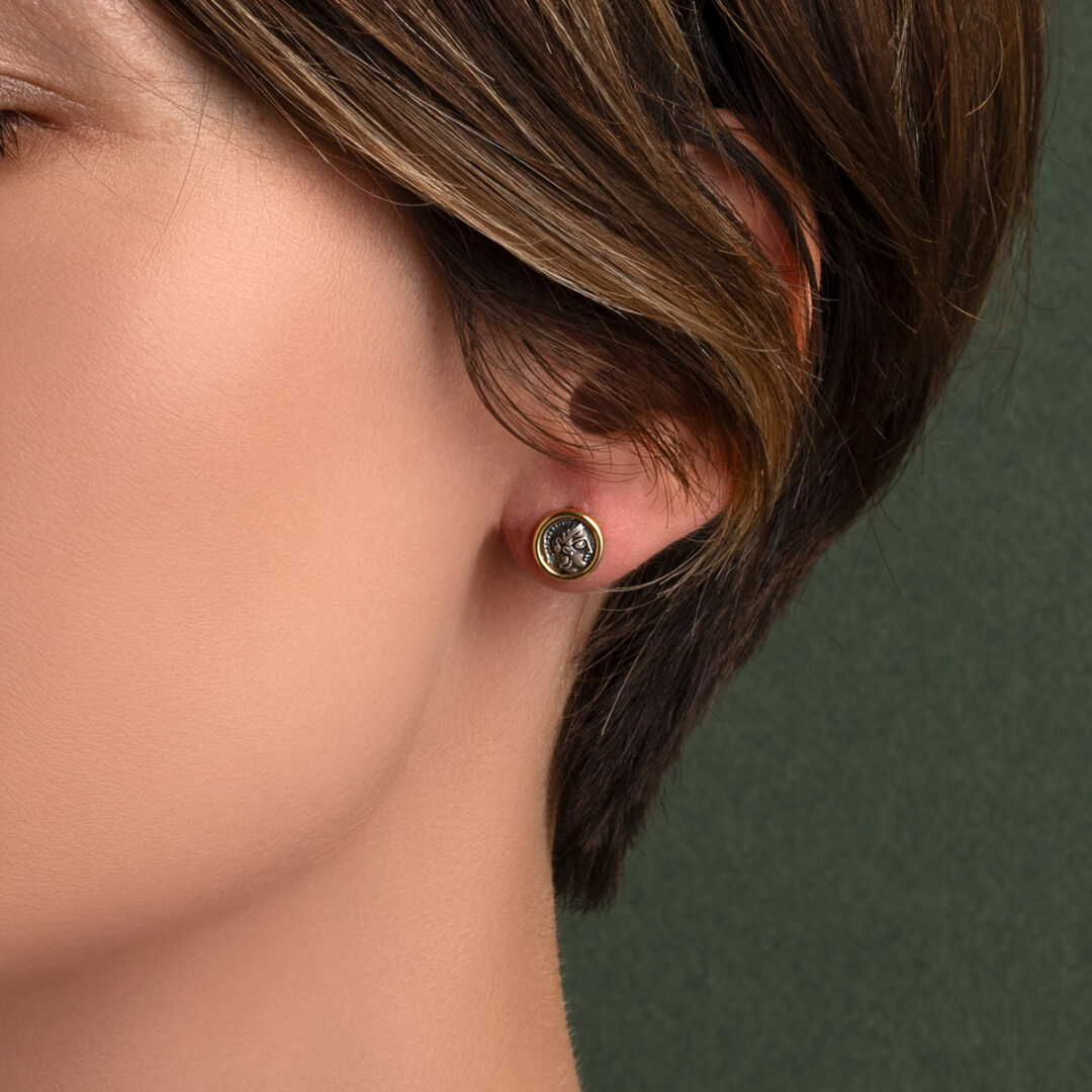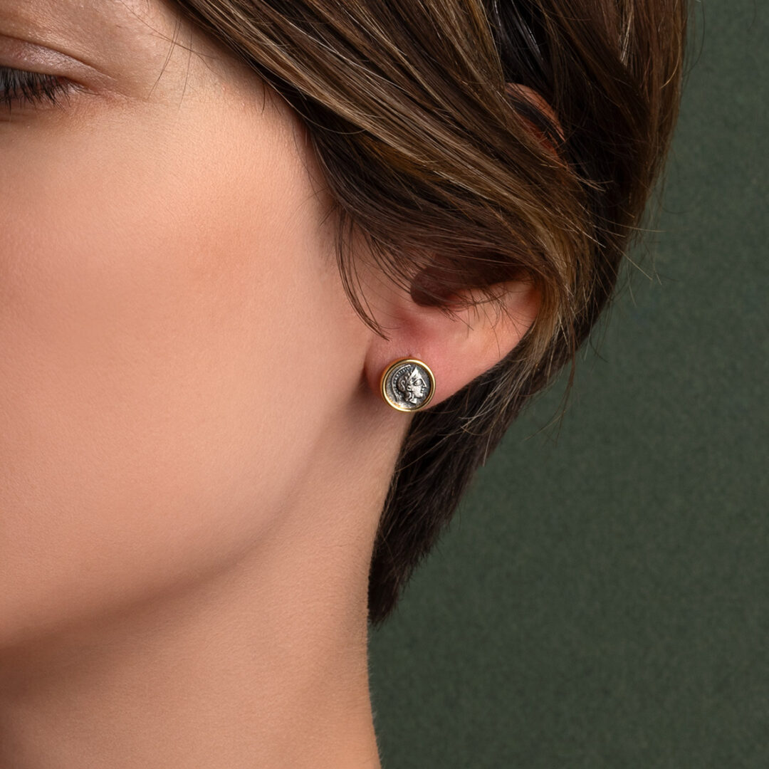 Goddess Athena Coin Earrings – 14K Gold and Sterling Silver