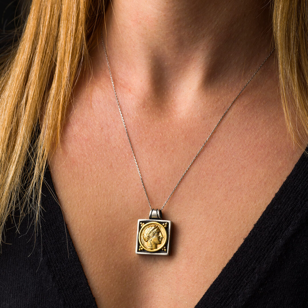 Goddess Athena Coin Pendant – 14K Gold and Sterling Silver