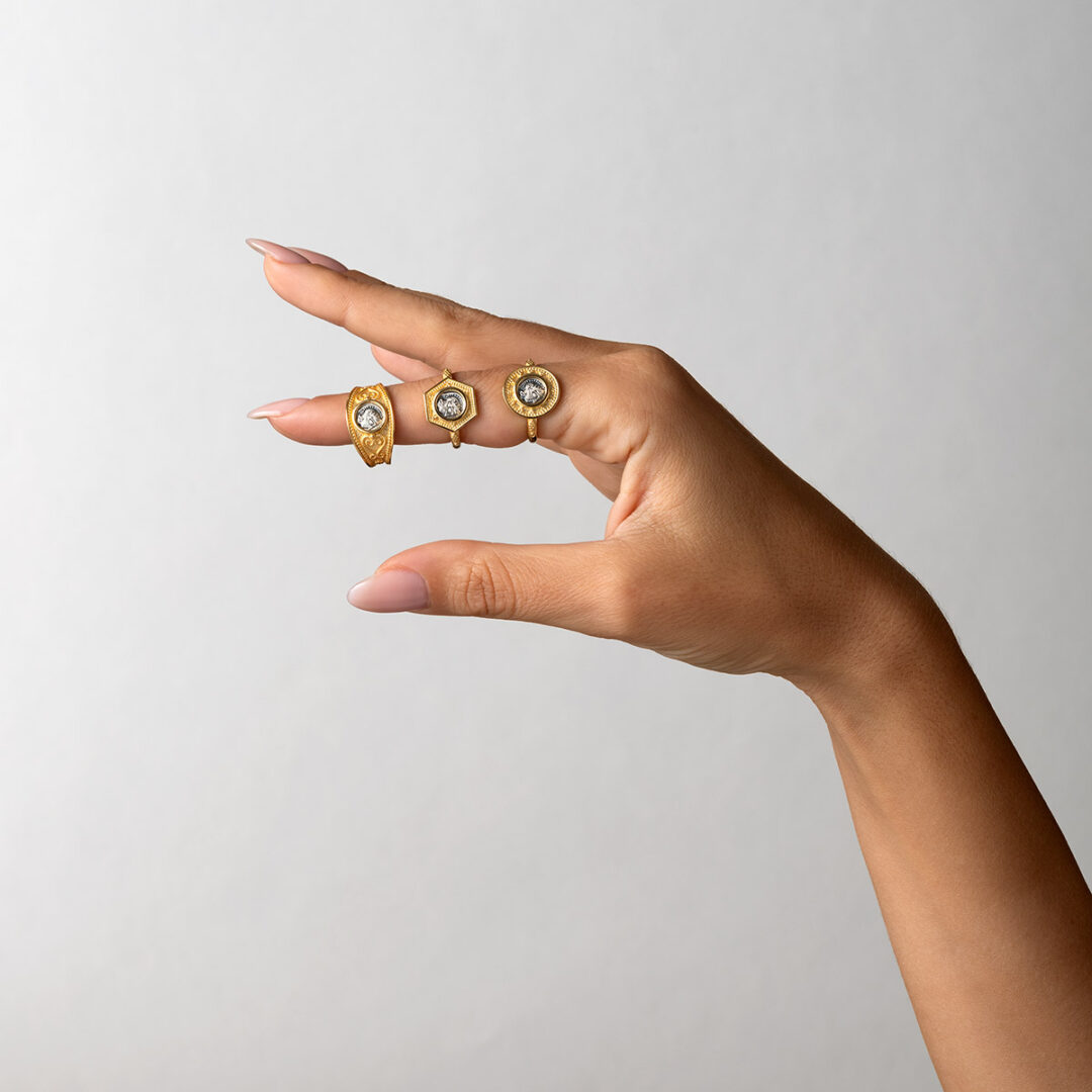 Goddess Athena Polygon Ring – 14k Gold and Sterling Silver