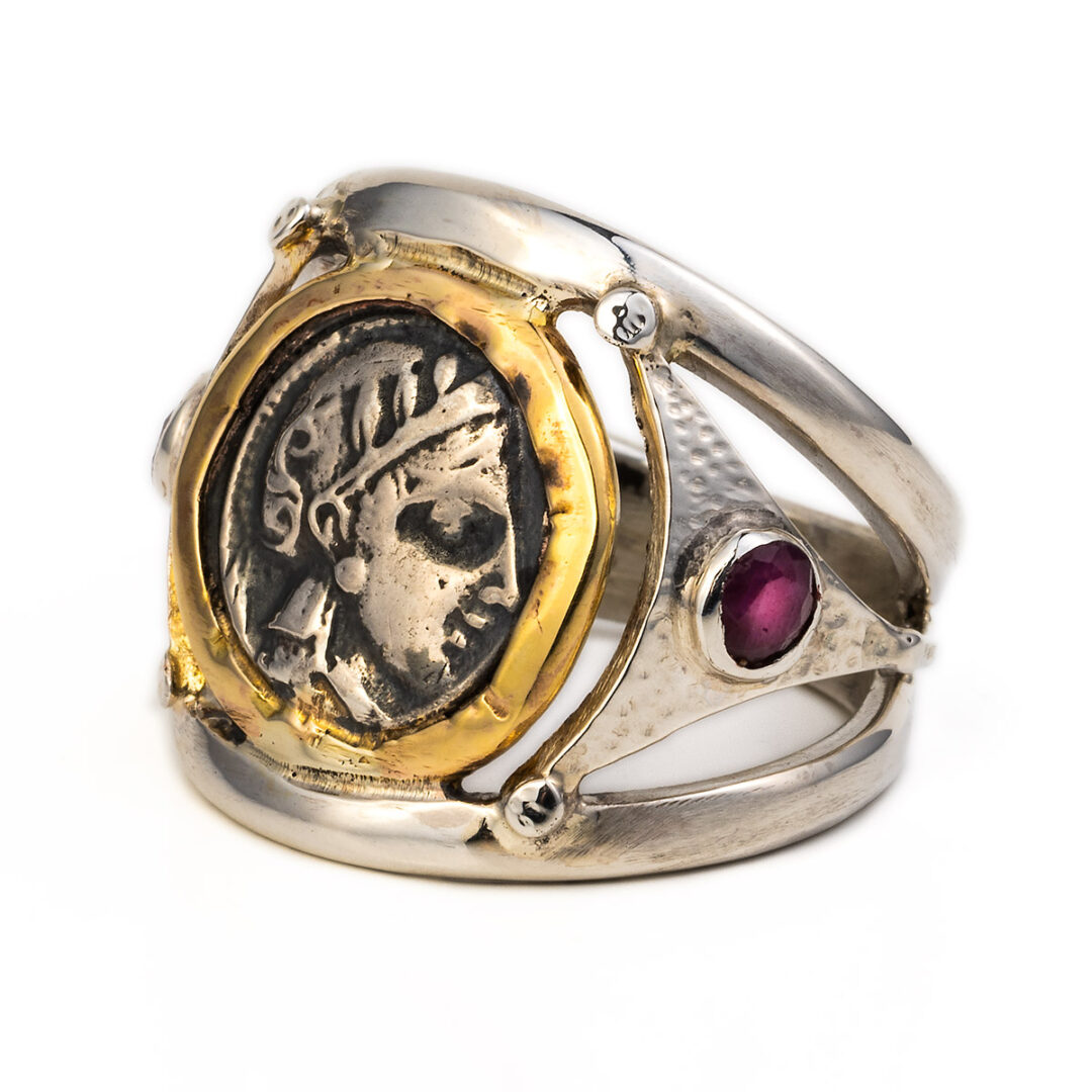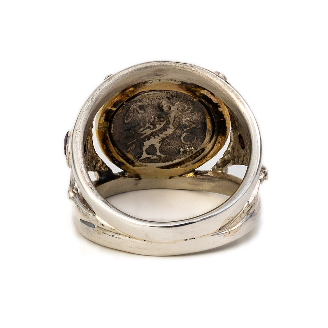 Ring inspired by the ancient Greek tetradrachm, depicting Goddess Athena and the Wise Owl. This coin is one of the most popular ancient Greek coins.