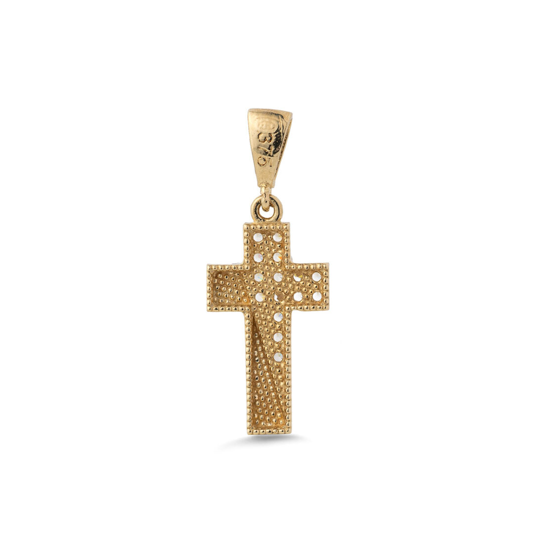 Gold Cross Pendant with Zircon Stones
