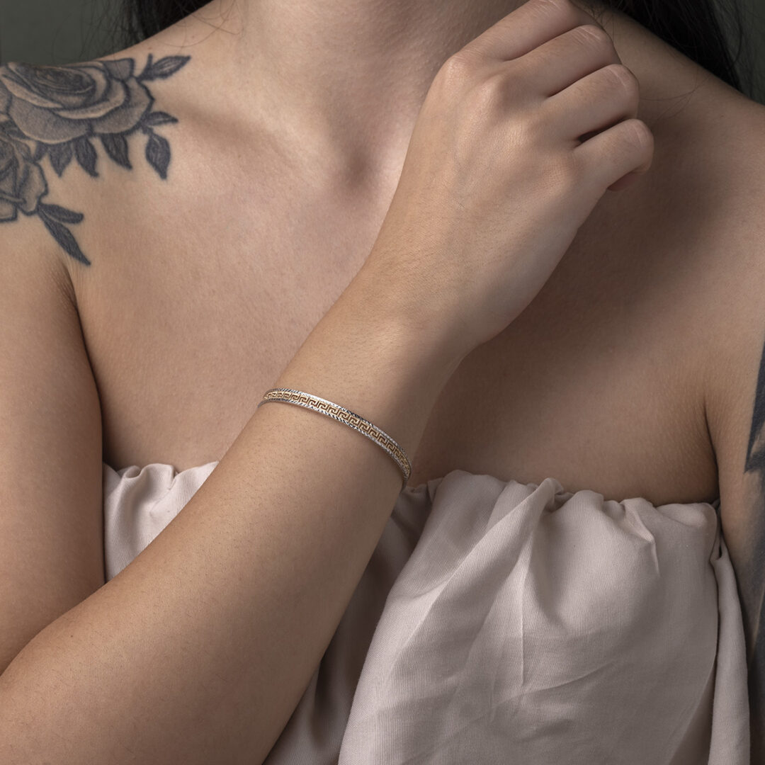 Meandros design is a decorative border constructed from a continuous line, shaped into a repeated motif. Such a design is also called the Greek fret or Greek key design, although these are modern designations. On the one hand, the name “meander” recalls the twisting and turning path of the Meander River in Asia Minor, and on the other hand, as Karl Kerenyi pointed out, “the meander is the figure of a labyrinth in linear form” the meaning is that there is no beginning and no end in some cases so it becomes the symbol of long life and eternity.
