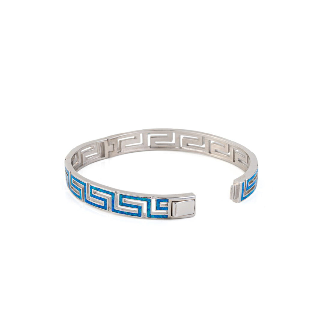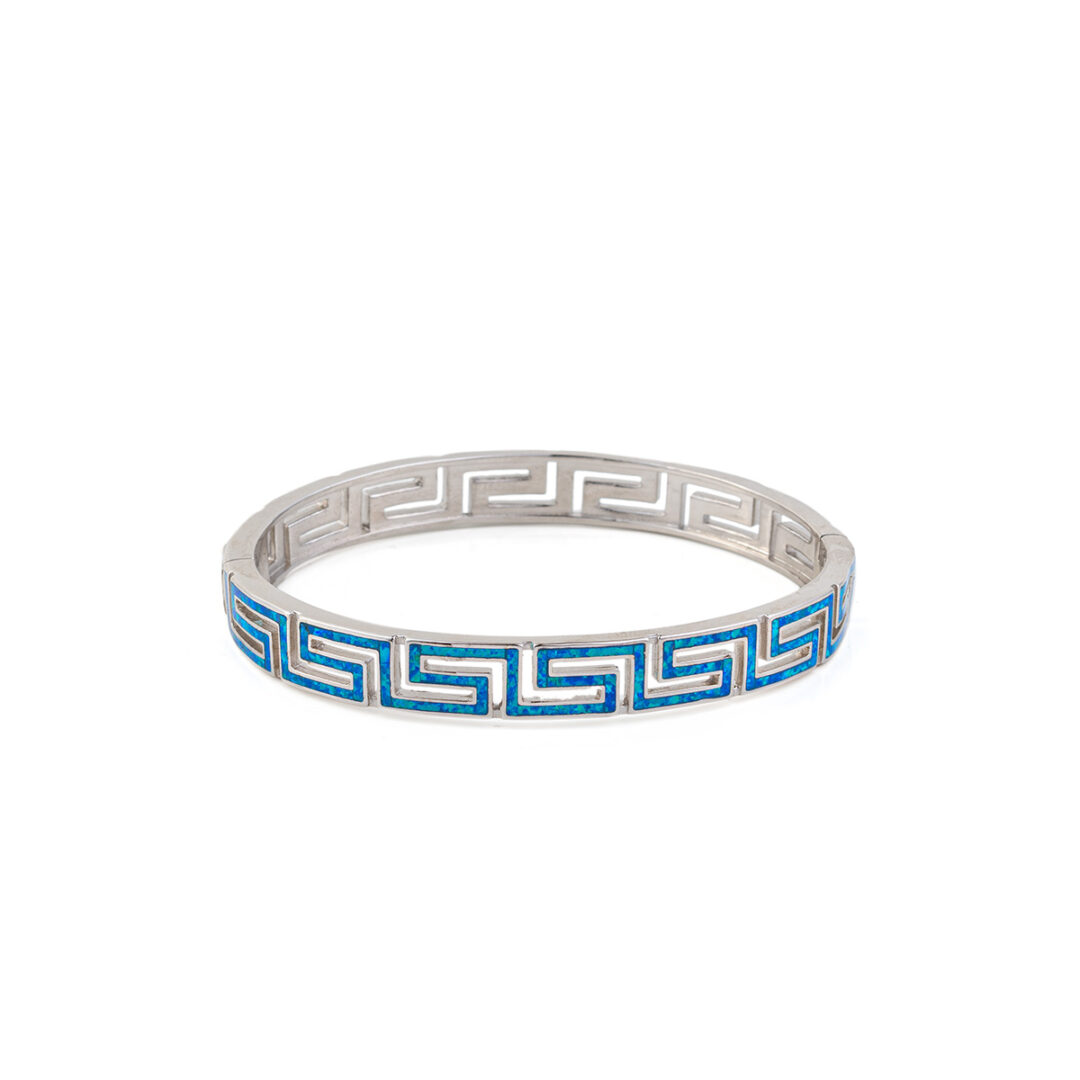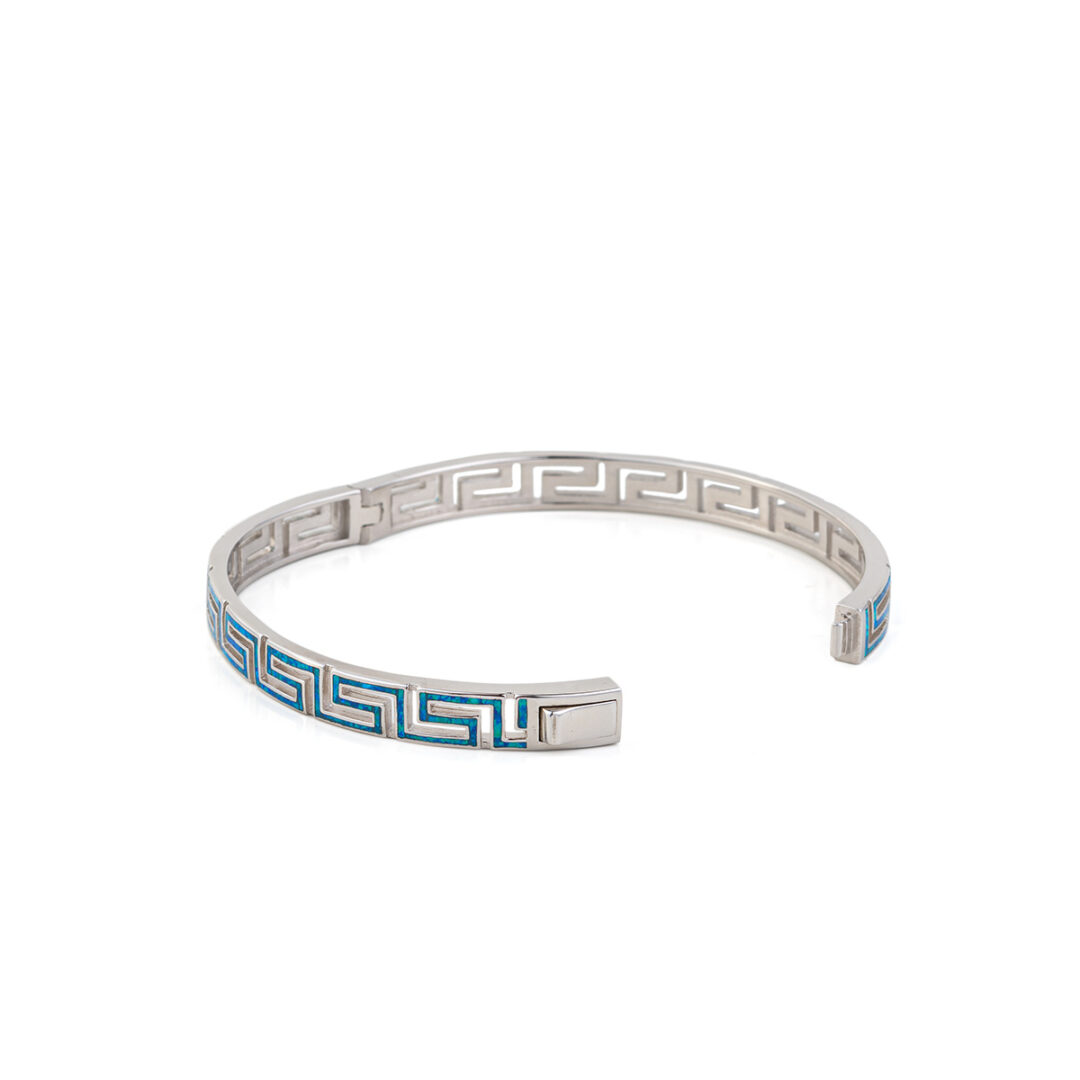 Greca Bangle Bracelet with Blue Opal stone – 925 Sterling Silver