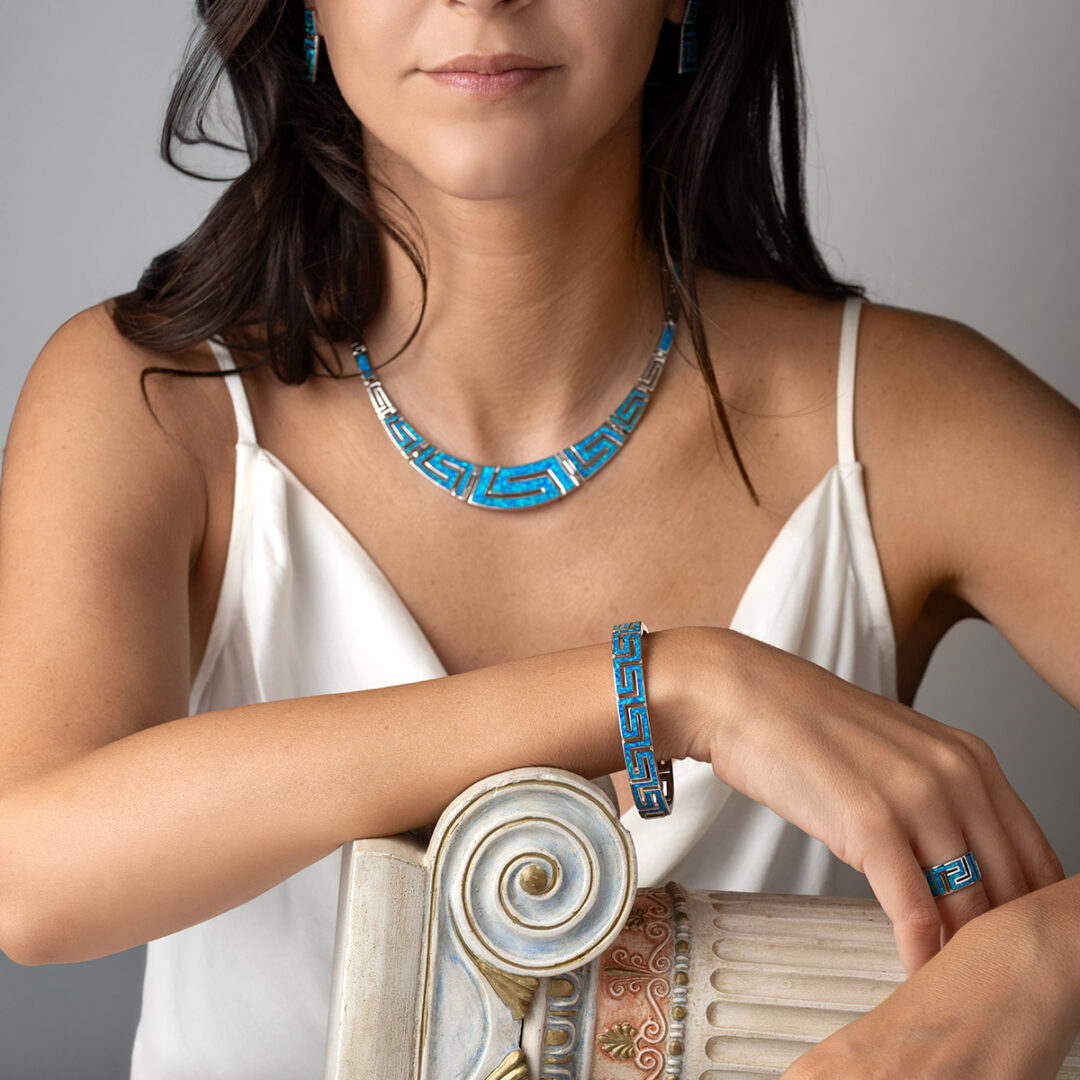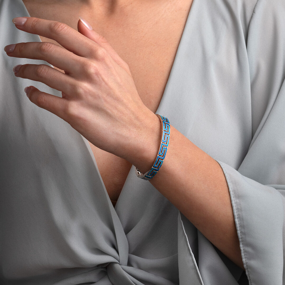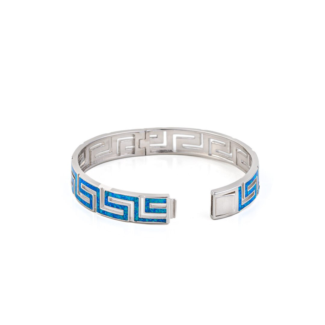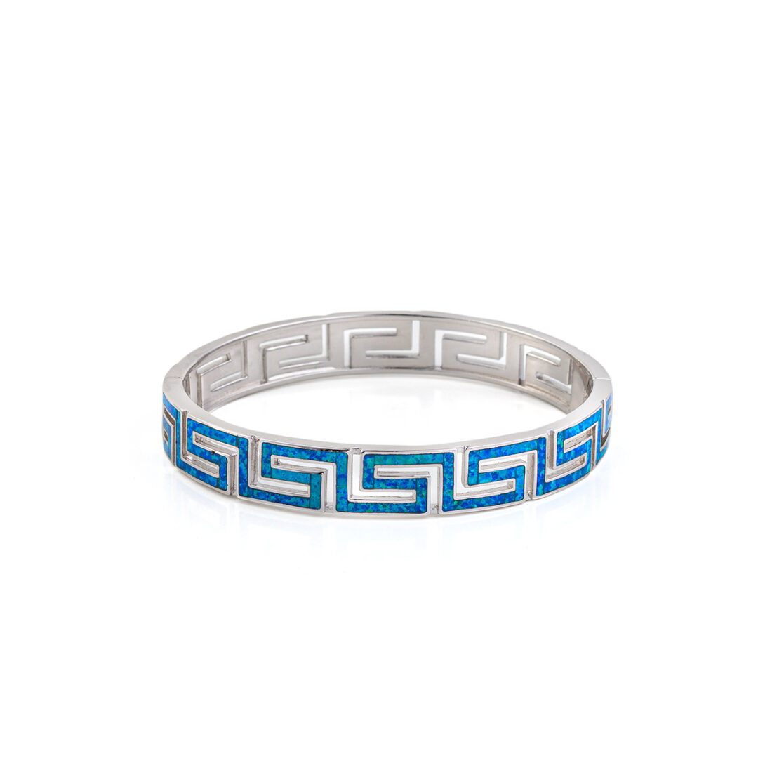 Greca Bangle Bracelet with Blue Opal stone – 925 Sterling Silver