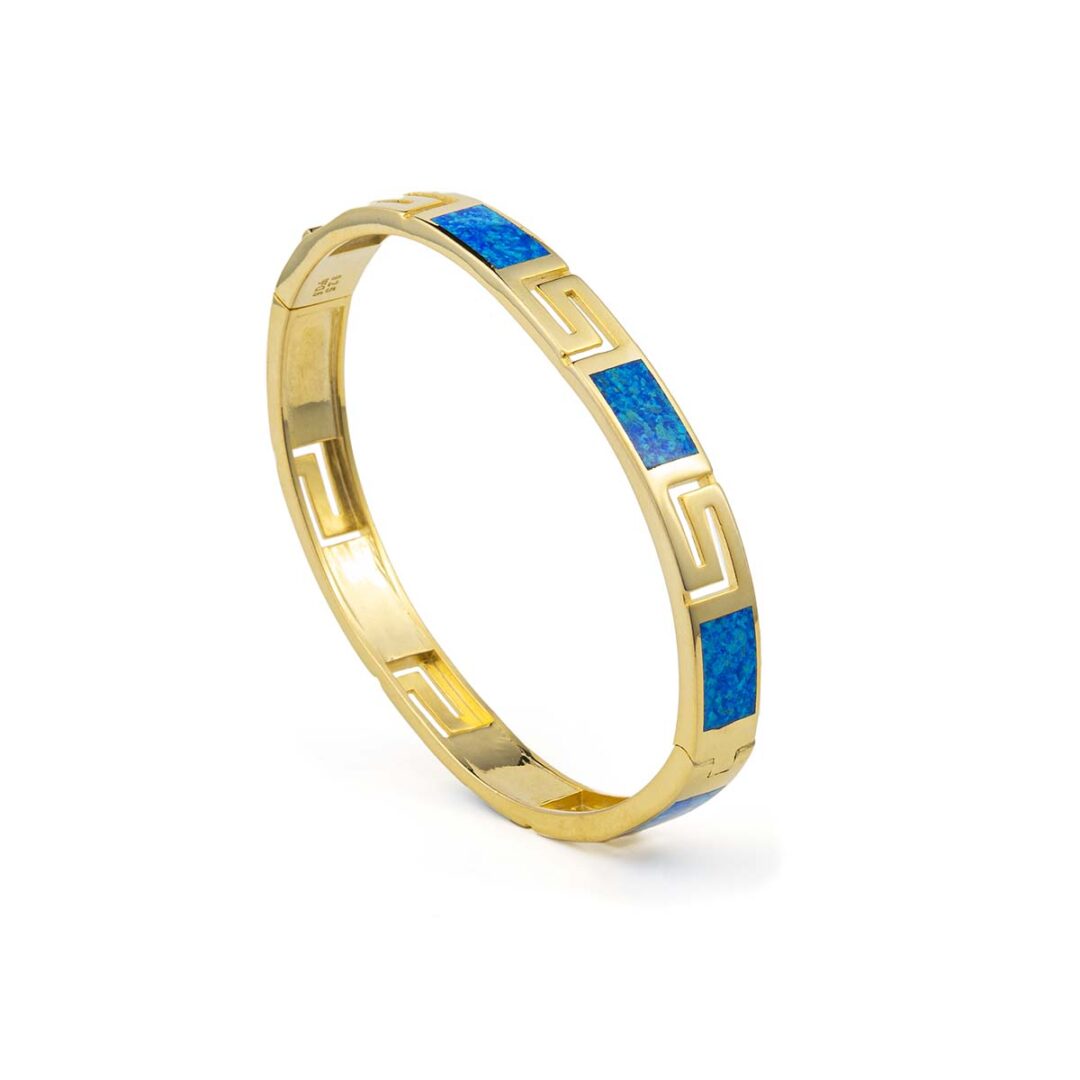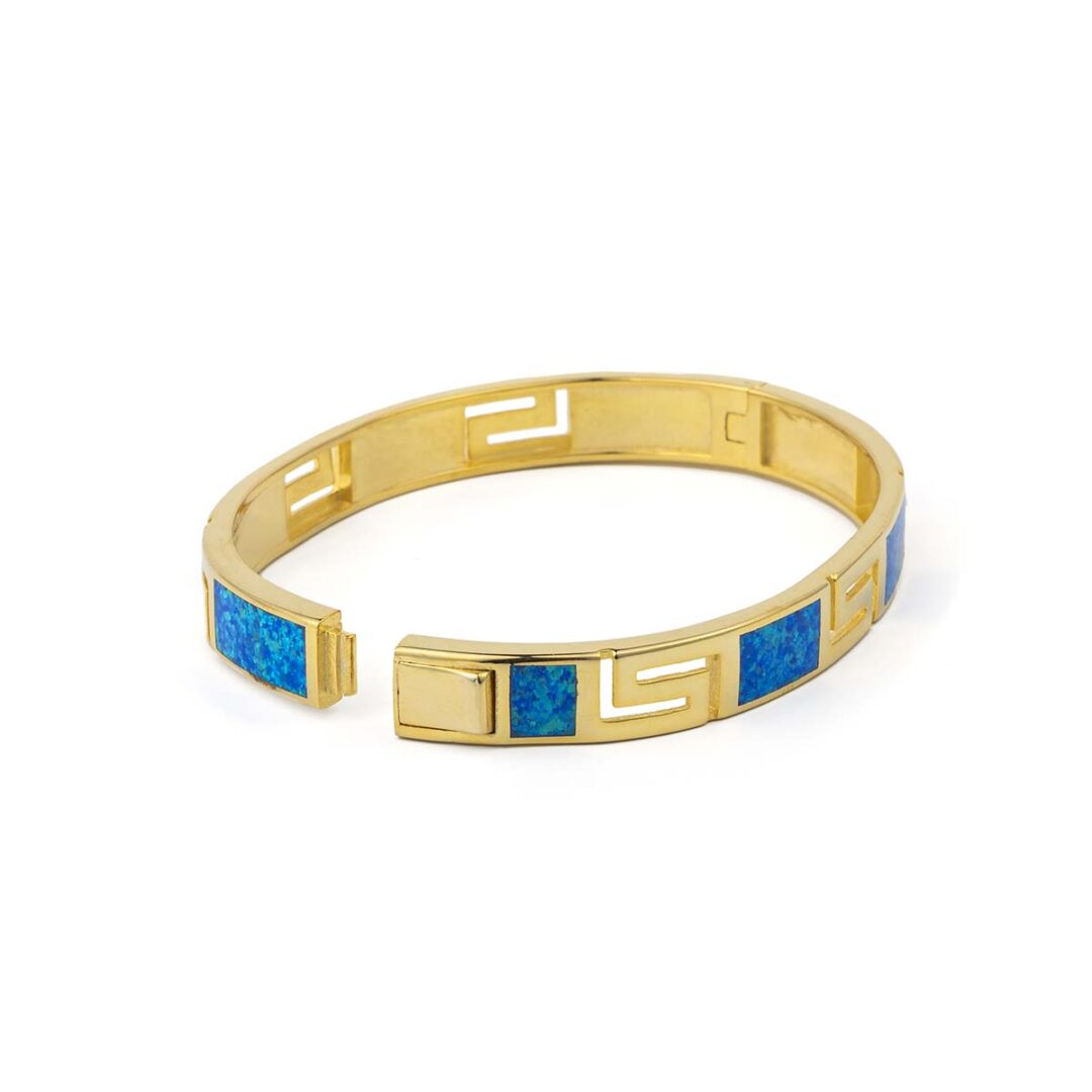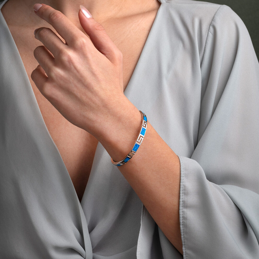 Greca Design Bracelet with Blue Opal – Sterling Silver