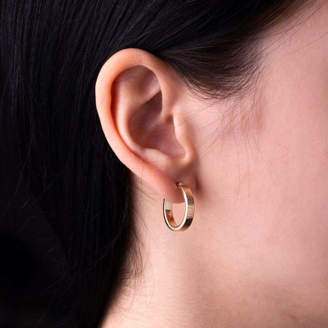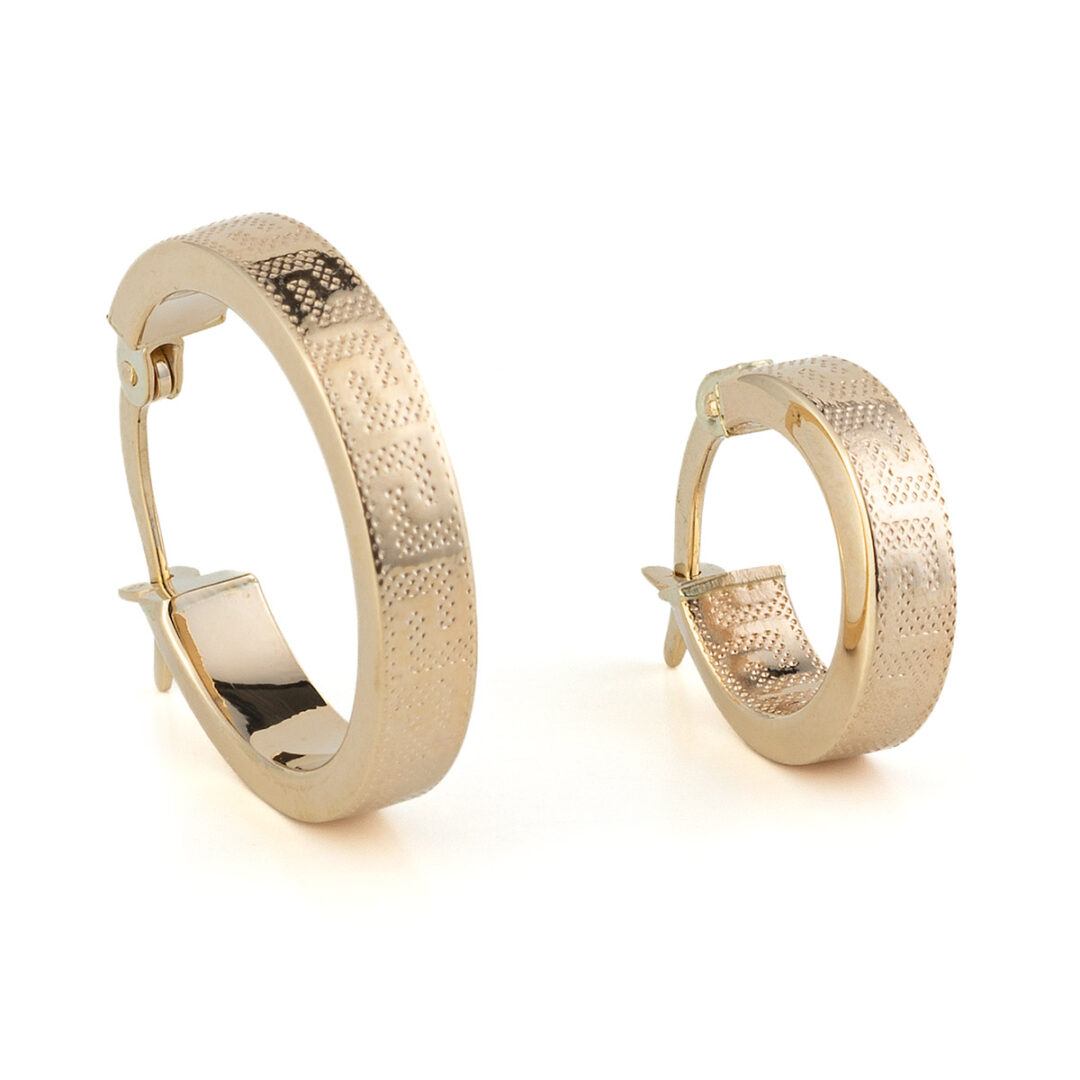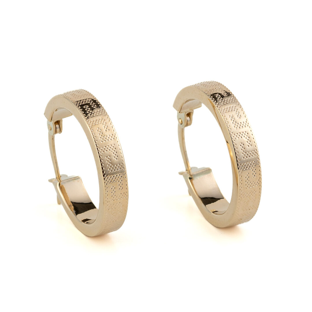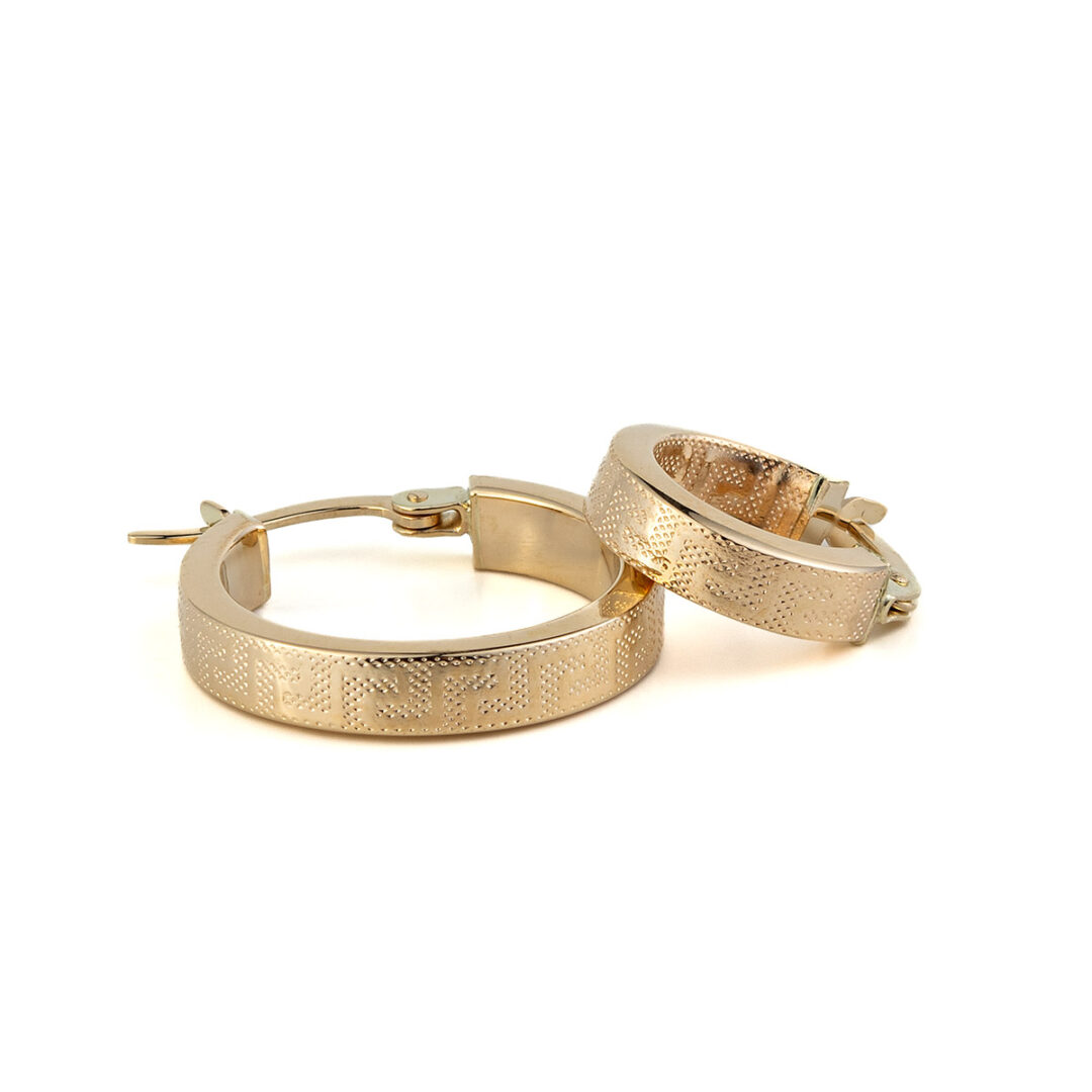 These hoop earrings are enriched with an engraved Greek Key pattern.