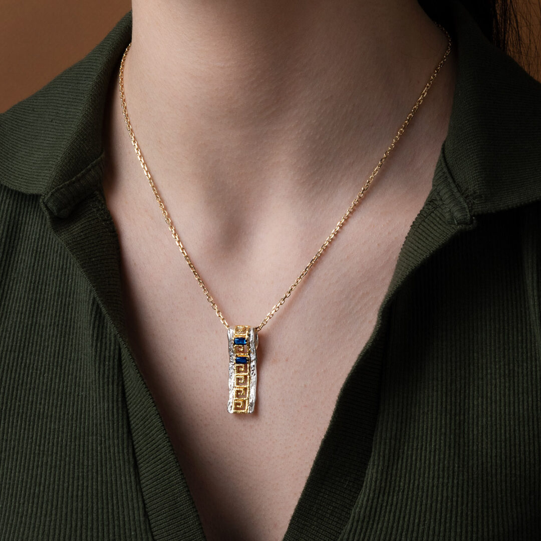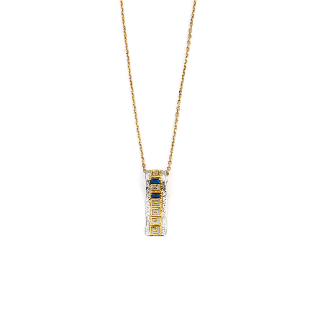 Greca Lace Pendant with Blue Stone