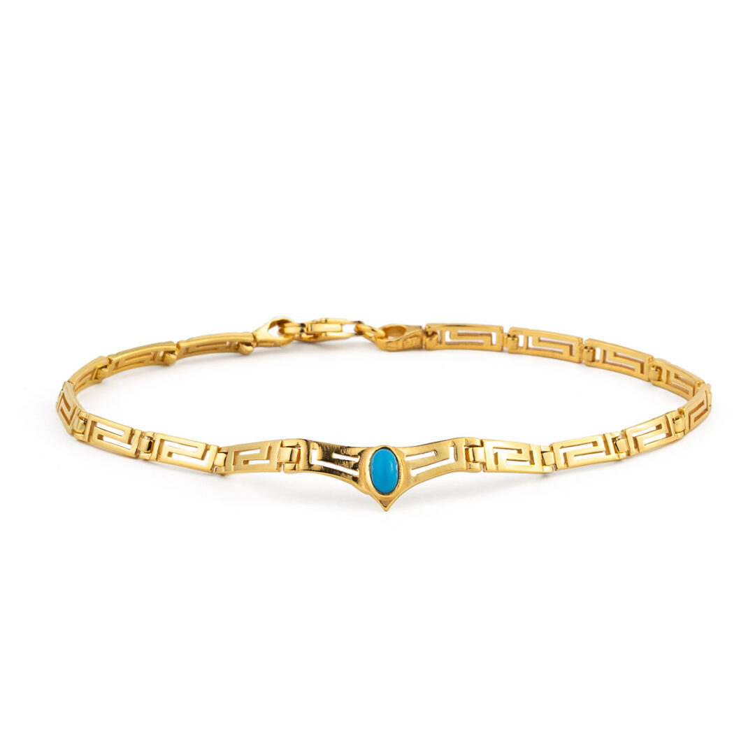 Greca Link V-Shaped Bracelet with Turquoise – 925 Sterling Silver