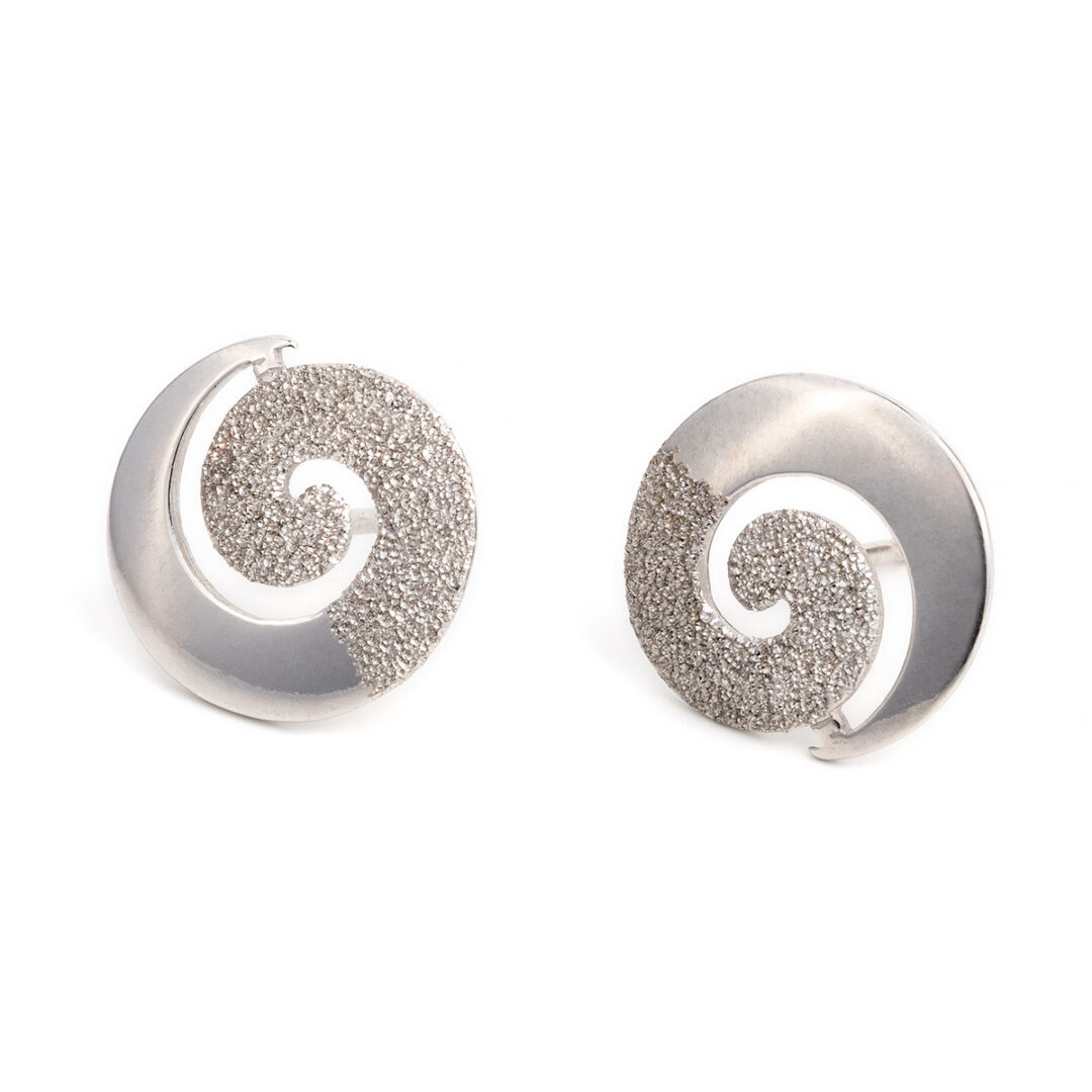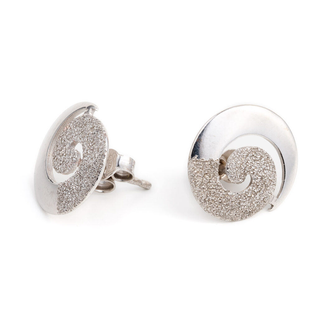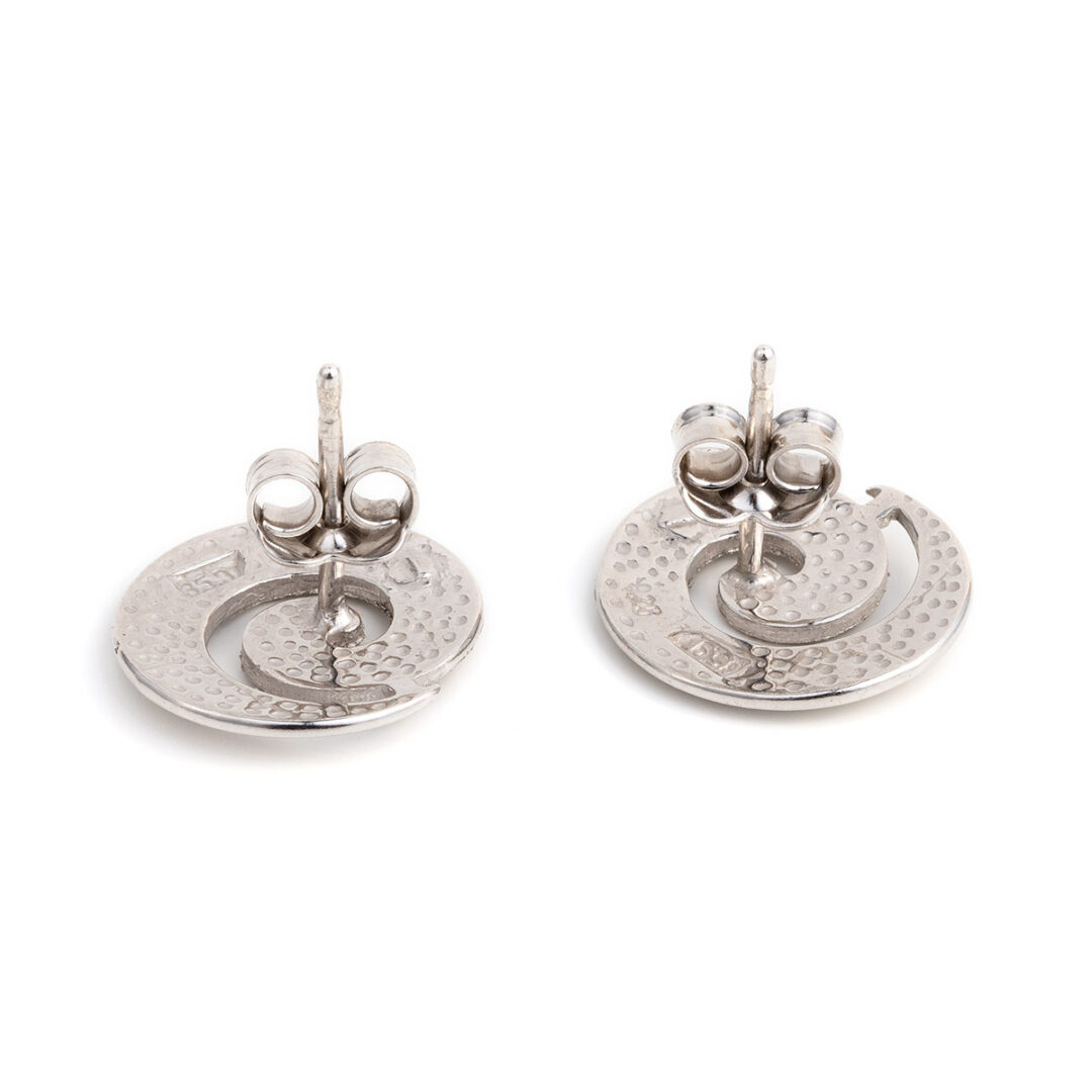 Stud Earrings inspired by the ancient Greek design the Circle of Life or spiral design. The spiral is one of the oldest symbols of human spirituality, carved or painted into rocks thousands of years ago. Symbol of movement and progressive development, growth, expansion, cosmic energy, symbol of the sun.. Spirals have been found in burial sites, in vases, in jewelry, clothing, weapons… They can be seen in every aspect of nature, like the tides in the oceans, the winds, the plants, the shells. The spiral phenomenon has been explained through mathematics from the time of Archimedes, the great Greek mathematician.