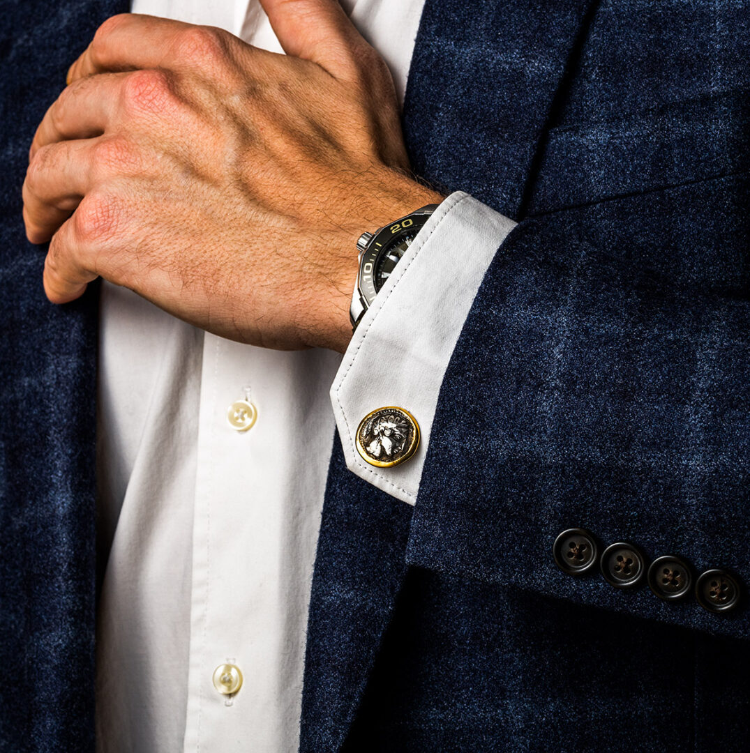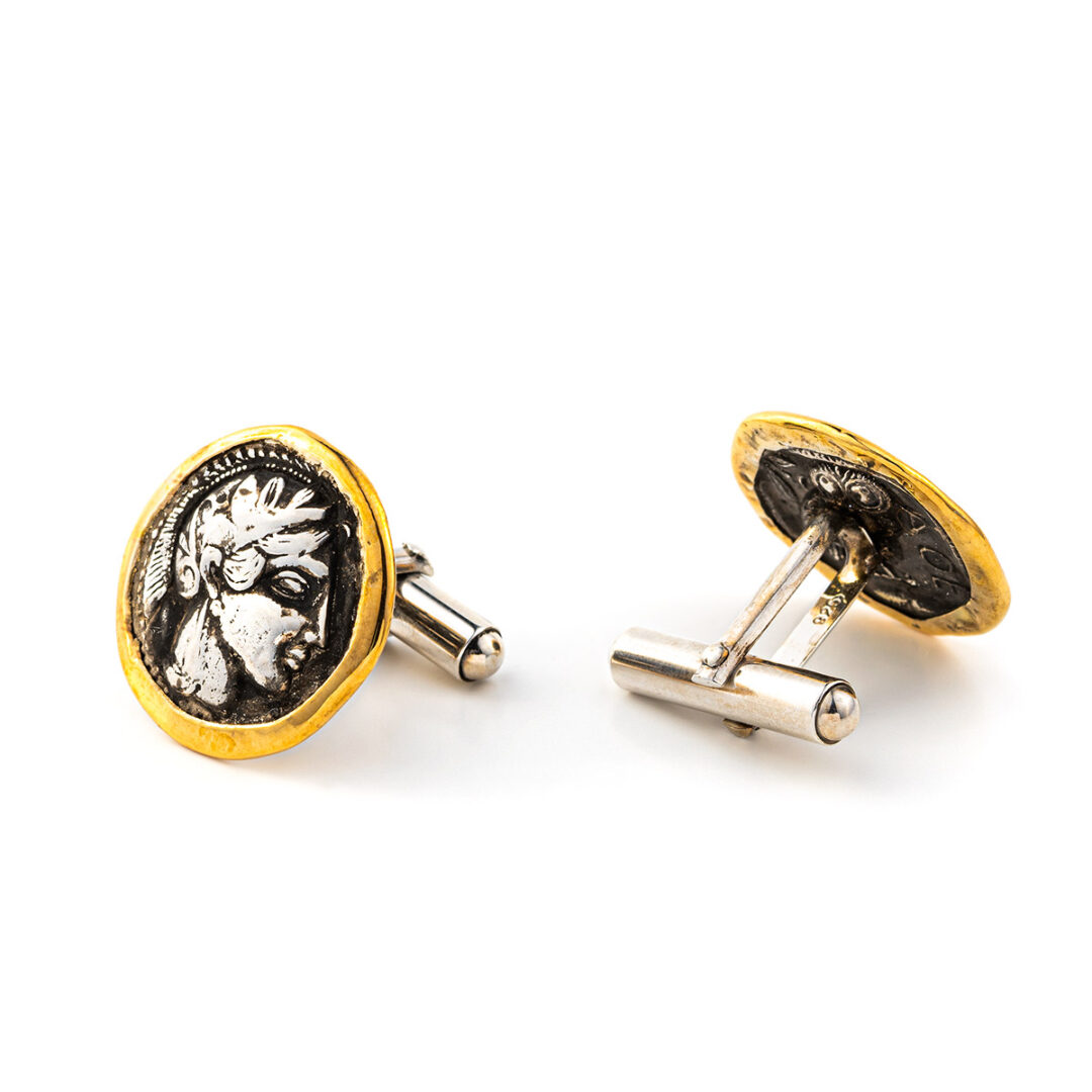 Greek Goddess Athena Coin Cufflinks – 14K Gold and 925 Sterling Silver