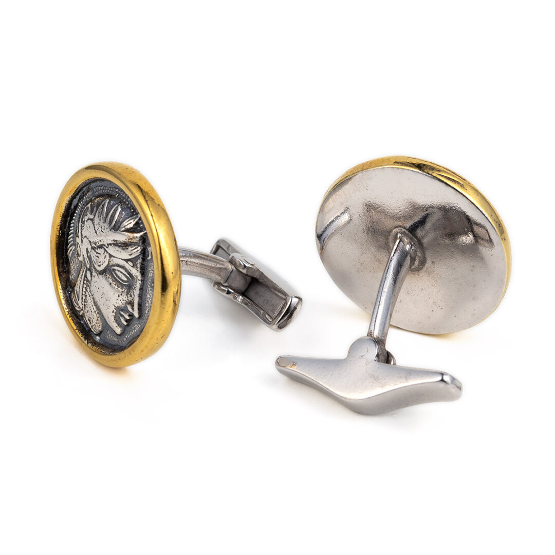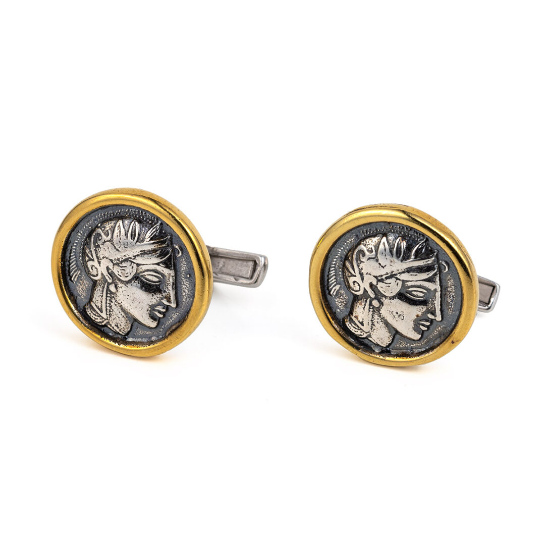 Greek Goddess Athena Cufflinks – Sterling Silver and Gold Plated