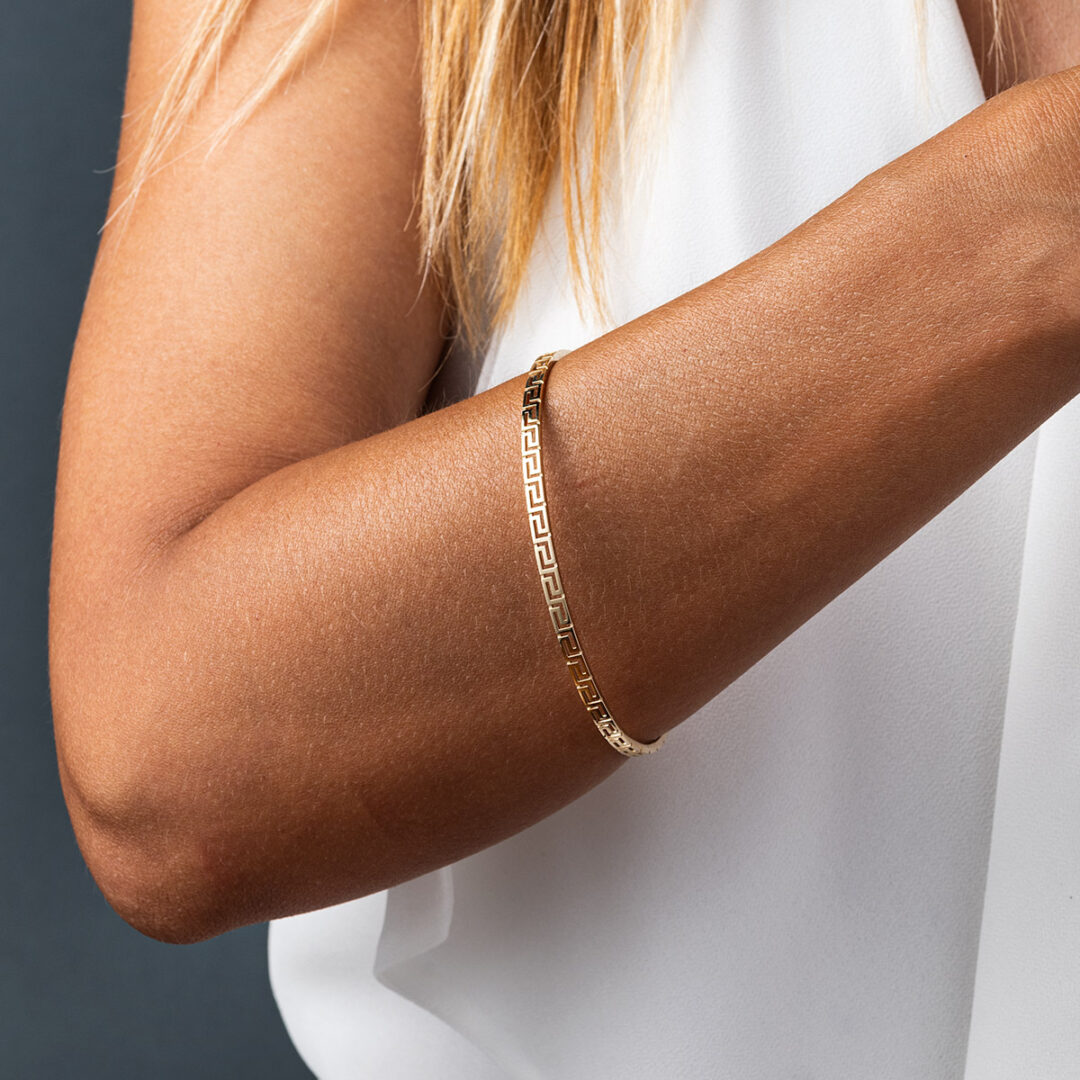 Meandros design is a decorative border constructed from a continuous line, shaped into a repeated motif. Such a design is also called the Greek fret or Greek key design, although these are modern designations. On the one hand, the name “meander” recalls the twisting and turning path of the Meander River in Asia Minor, and on the other hand, as Karl Kerenyi pointed out, “the meander is the figure of a labyrinth in linear form” the meaning is that there is no beginning and no end in some cases so it becomes the symbol of long life and eternity.