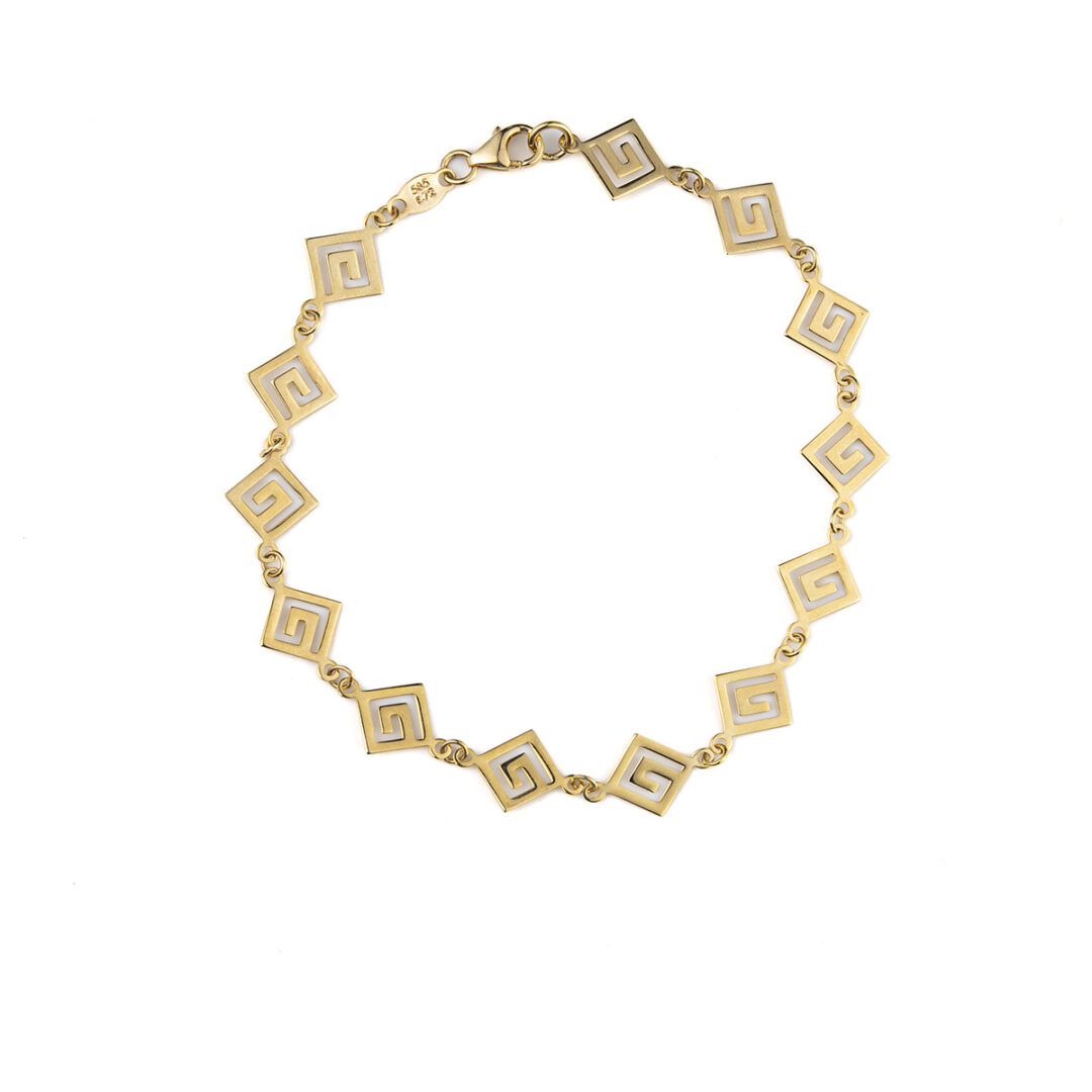 Meandros design is a decorative border constructed from a continuous line, shaped into a repeated motif. Such a design is also called the Greek fret or Greek key design, although these are modern designations. One the one hand, the name “meander” recalls the twisting and turning path of the Meander River in Asia Minor, and on the other hand, as Karl Kerenyi pointed out, “the meander is the figure of a labyrinth in linear form” the meaning is that these is no beginning and to end in some cases so it become the symbol of long life and eternity.