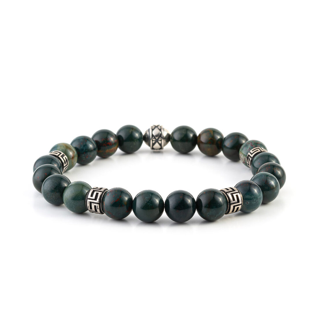 Greek Key Bracelet with Gemstone Beads – 925 Sterling Silver
