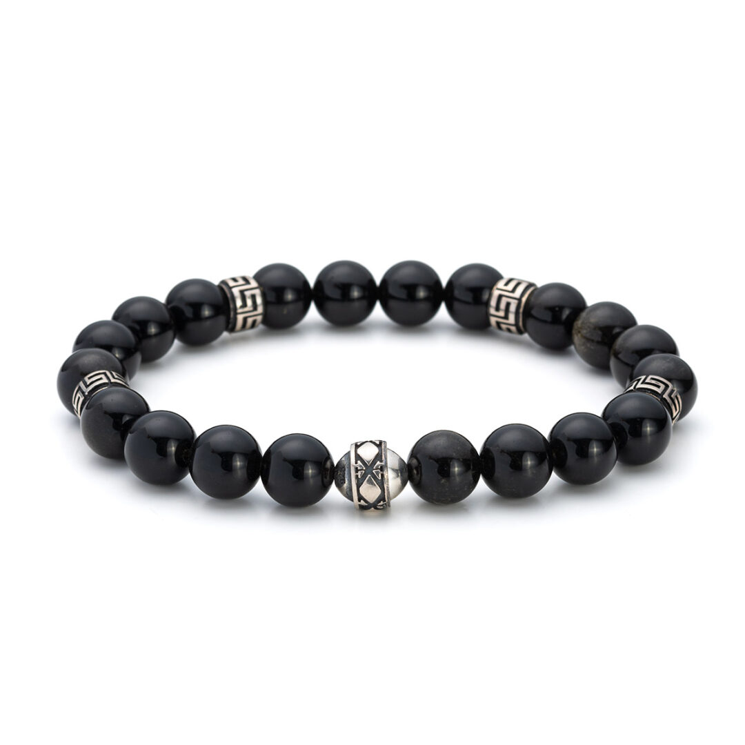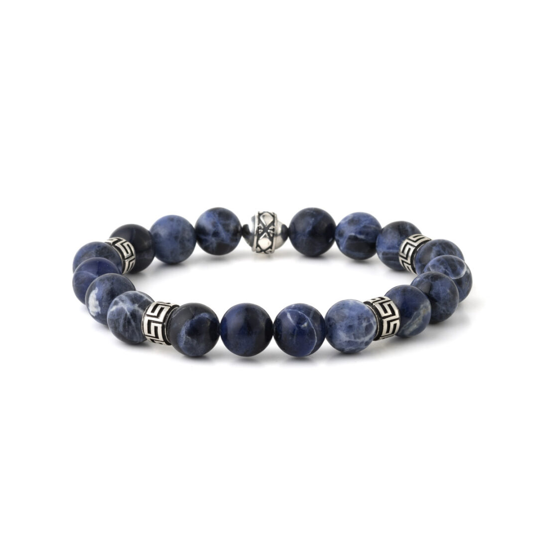 A flexible bracelet inspired by the ancient Meander motif with onyx or sodalite or bloodstones.