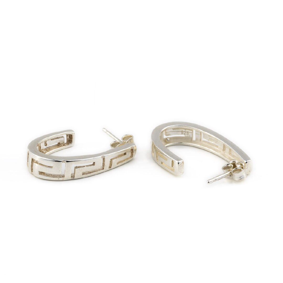 Greek Key Crescent Moon Earrings – 925 Sterling Silver