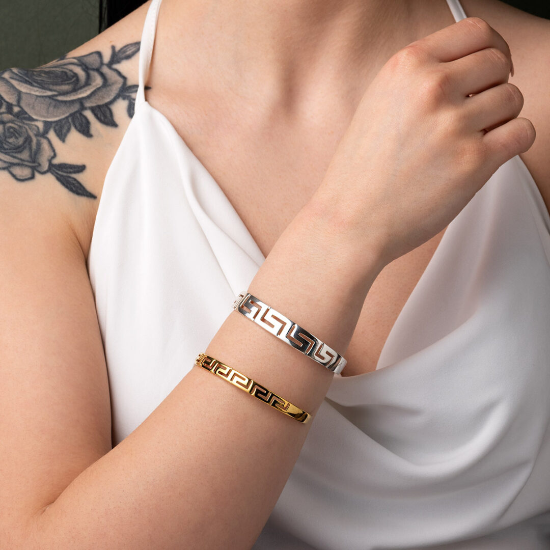 Meandros design is a decorative border constructed from a continuous line, shaped into a repeated motif. Such a design is also called the Greek fret or Greek key design, although these are modern designations. On the one hand, the name “meander” recalls the twisting and turning path of the Meander River in Asia Minor, and on the other hand, as Karl Kerenyi pointed out, “the meander is the figure of a labyrinth in linear form” the meaning is that there is no beginning and no end in some cases so it becomes the symbol of long life and eternity.
