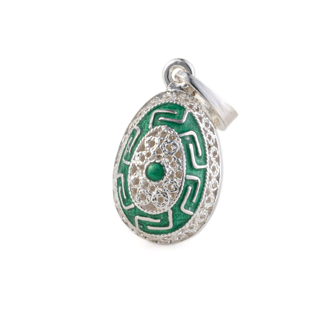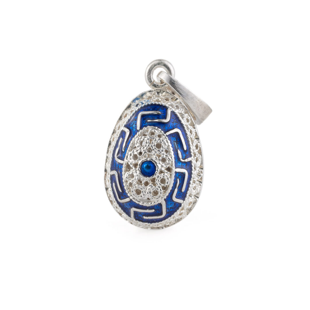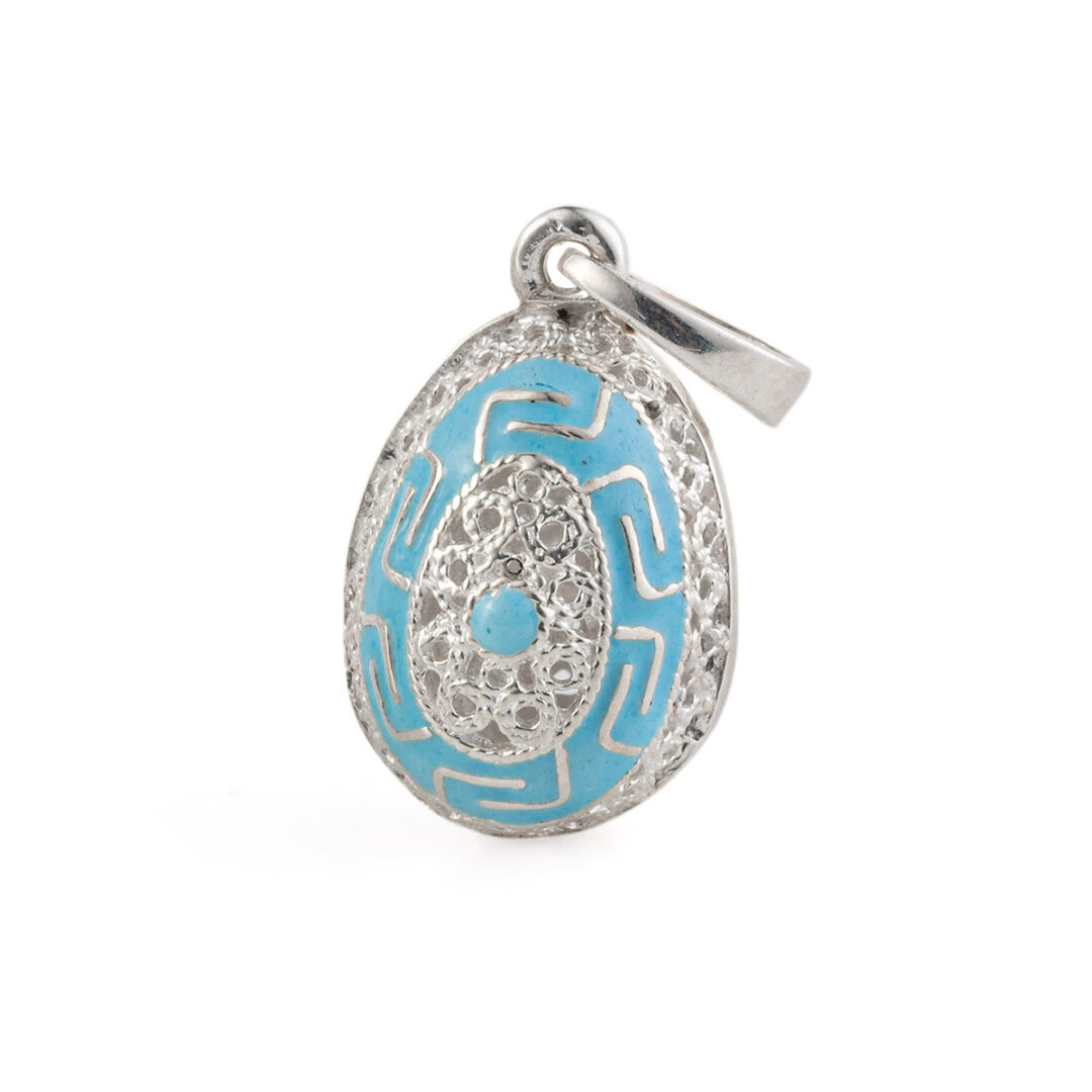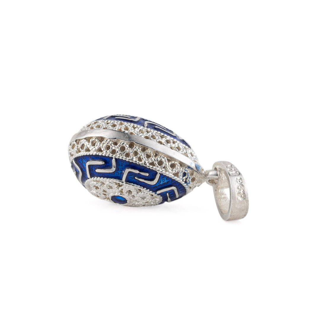 Greek Key Egg Enamel Pendant Necklace – 925 Sterling Silver
