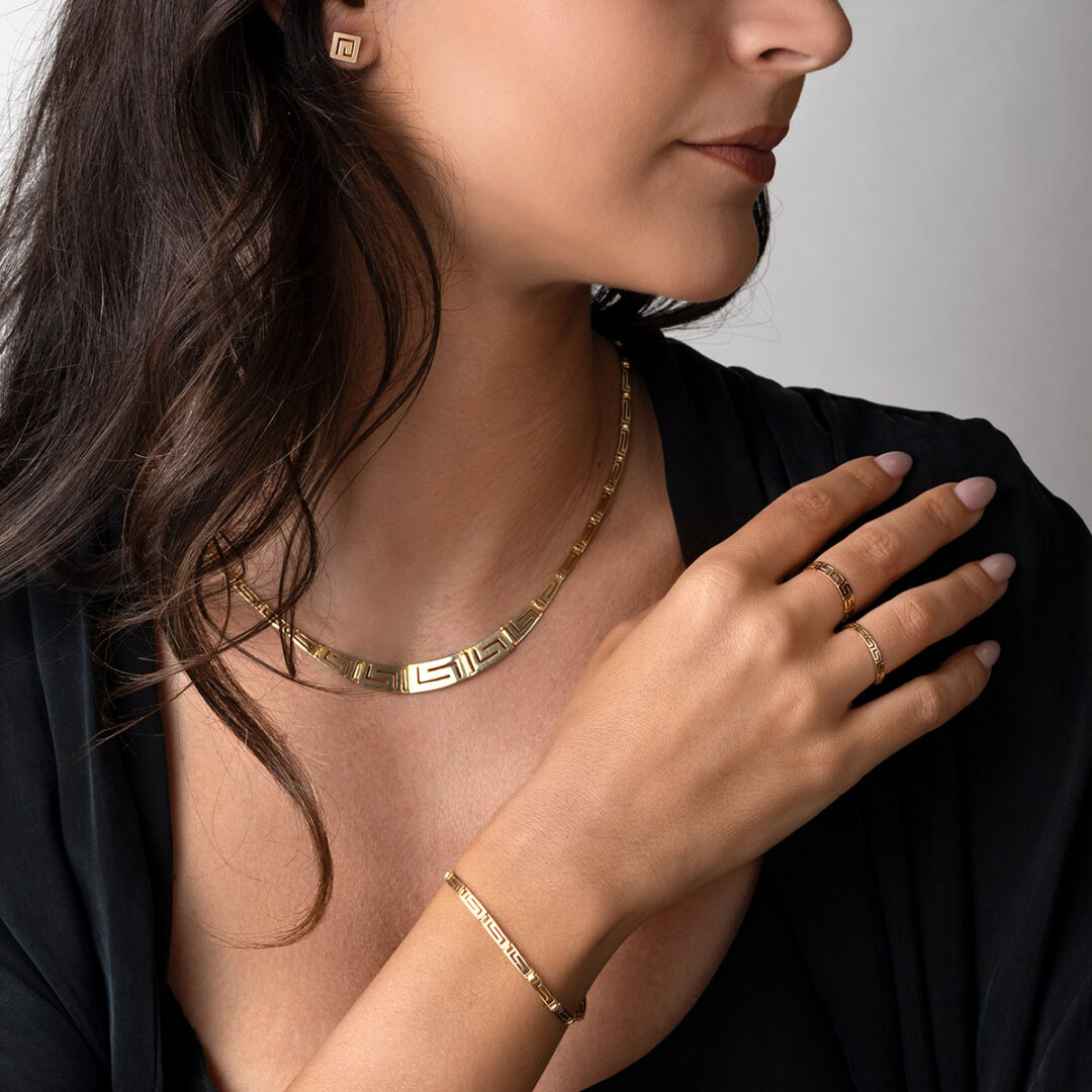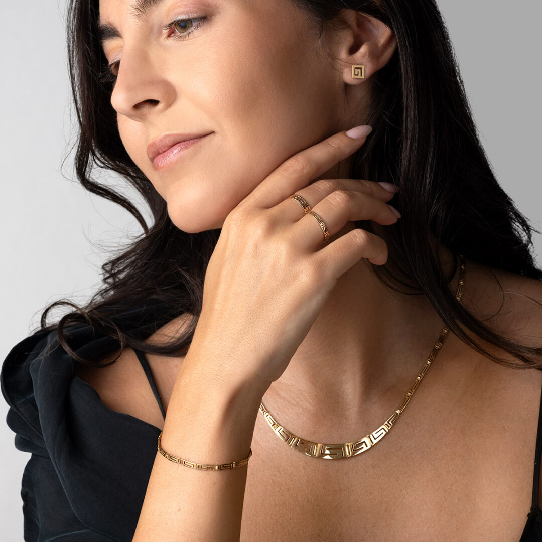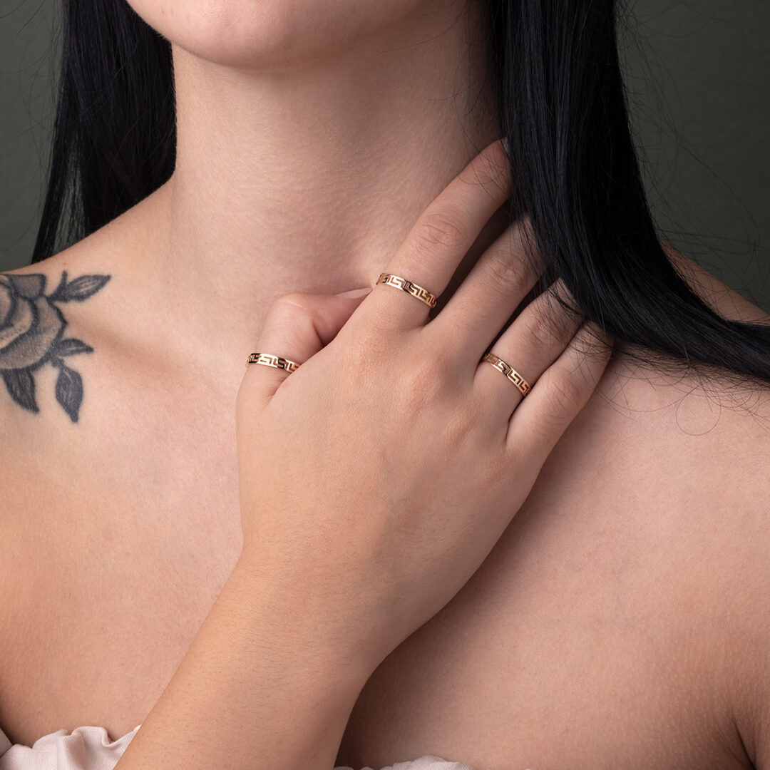 Greek Key Gold Band Ring inspired by the ancient Greek design the Meander or Greek Key.