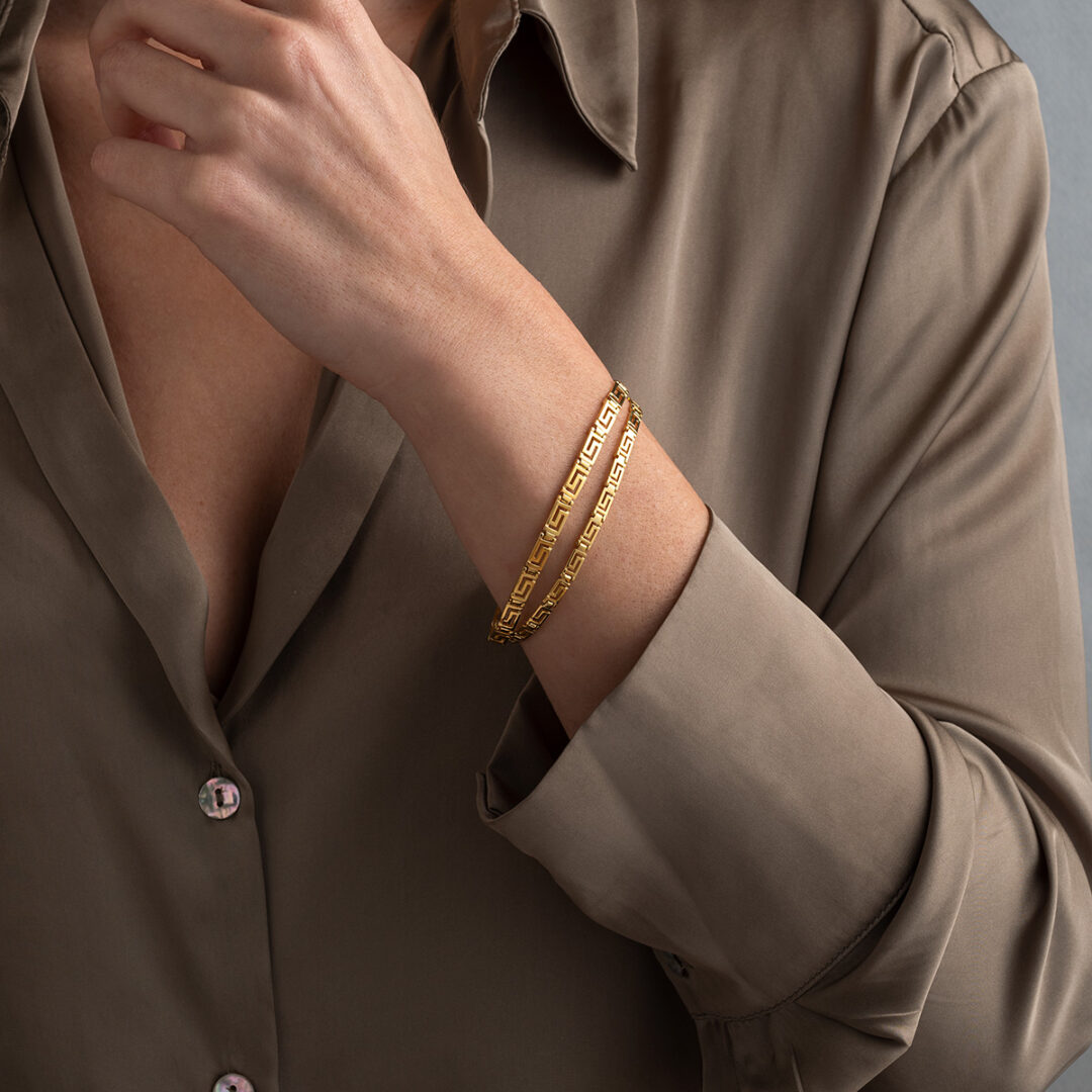 Meandros design is a decorative border constructed from a continuous line, shaped into a repeated motif. Such a design is also called the Greek fret or Greek key design, although these are modern designations. On the one hand, the name “meander” recalls the twisting and turning path of the Meander River in Asia Minor, and on the other hand, as Karl Kerenyi pointed out, “the meander is the figure of a labyrinth in linear form” the meaning is that there is no beginning and no end in some cases so it becomes the symbol of long life and eternity.