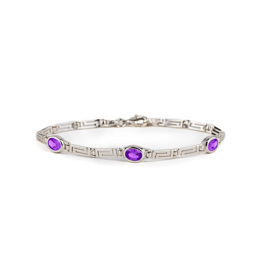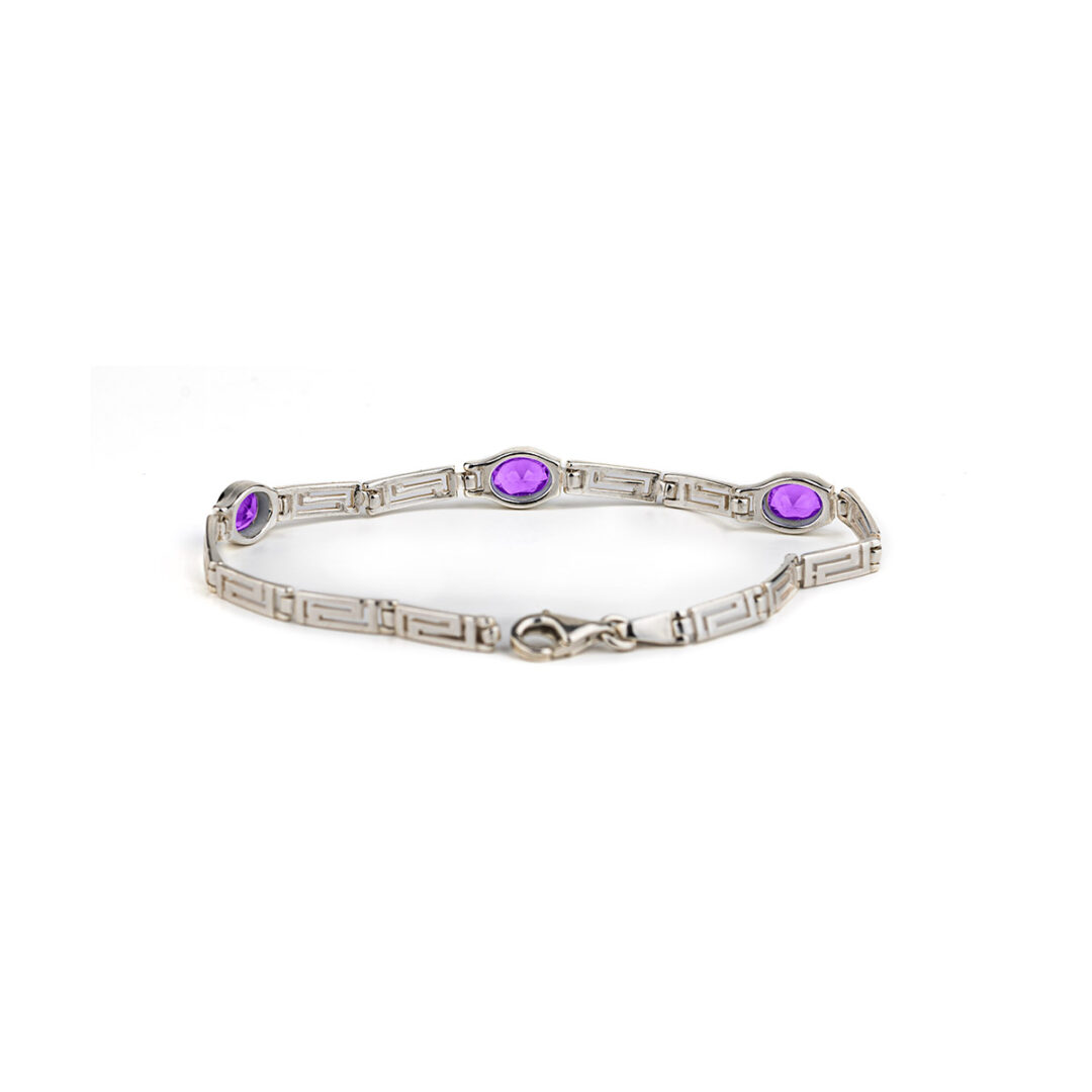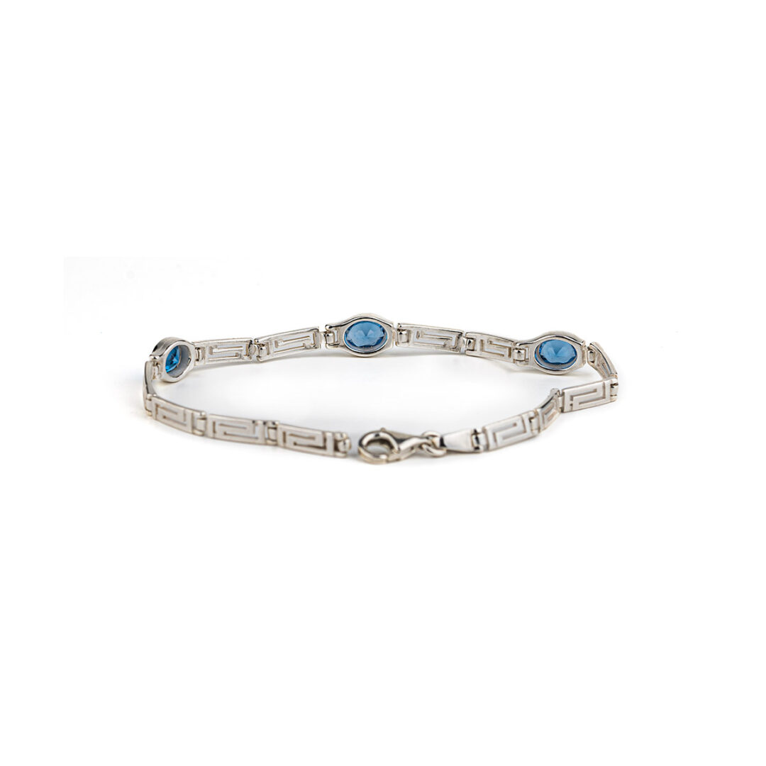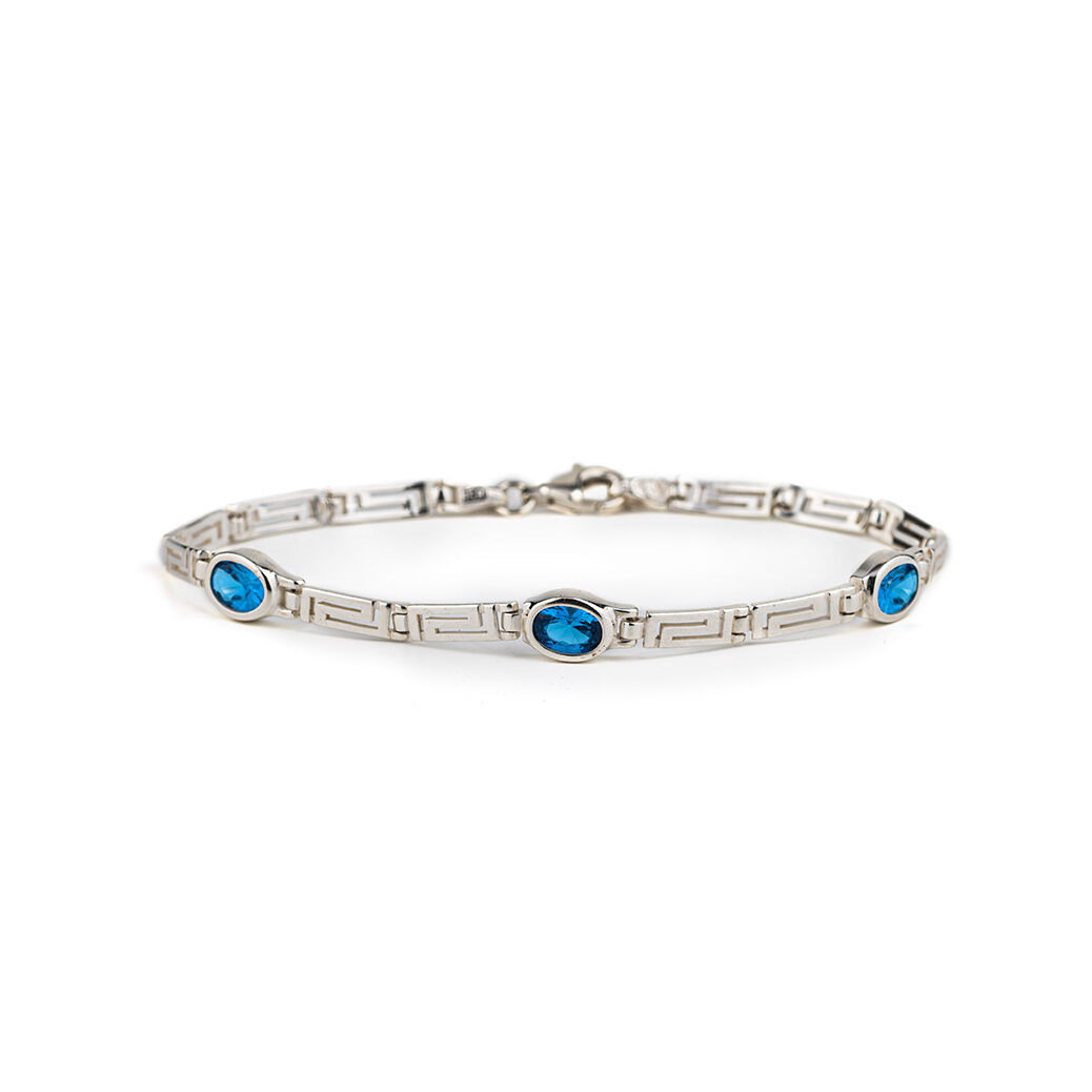 Greek Key Link Bracelet with Blue Zircon – 925 Sterling Silver