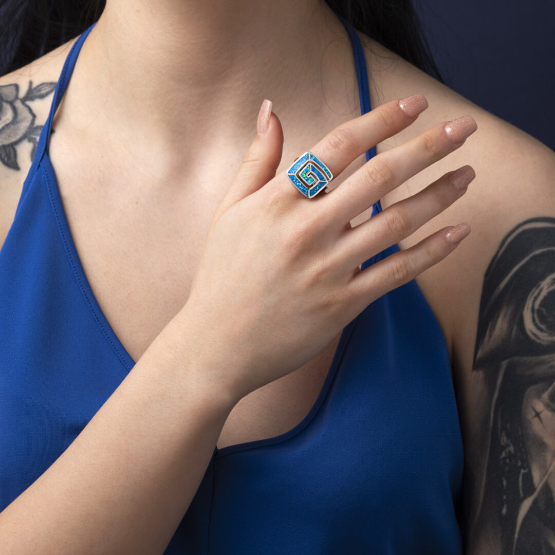 Made of 925⁰ sterling silver with blue opal stone.