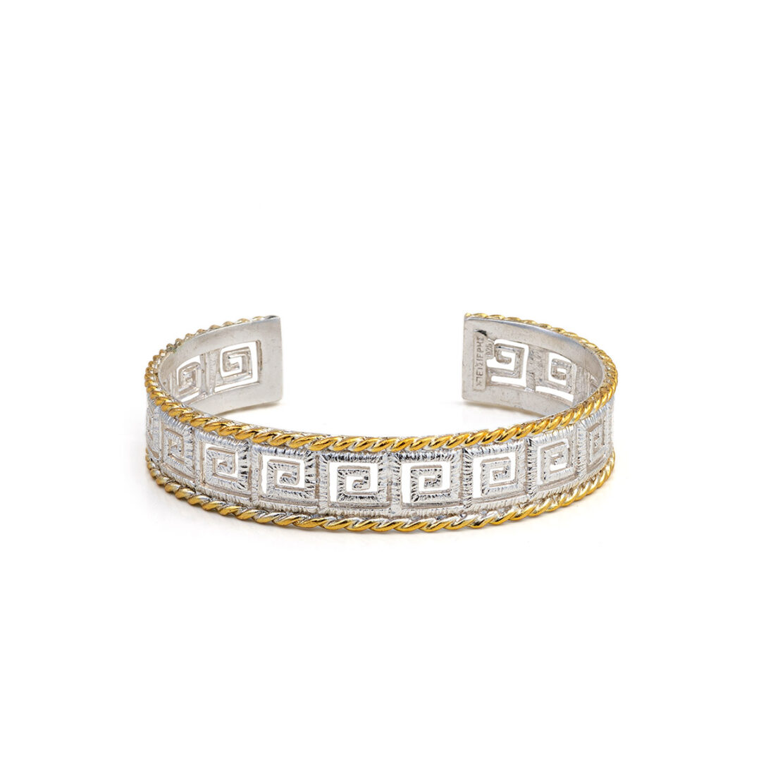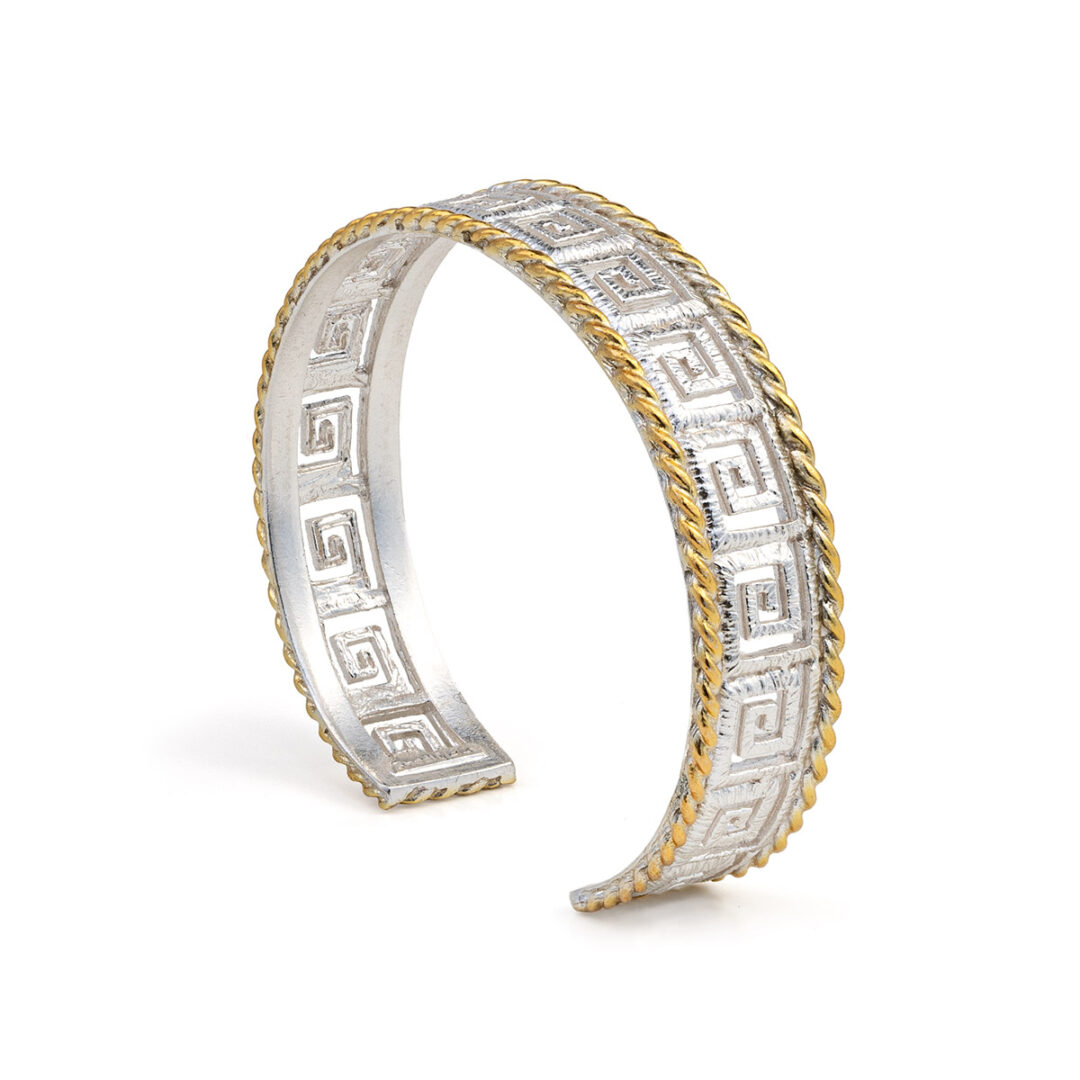 Meandros design is a decorative border constructed from a continuous line, shaped into a repeated motif. Such a design is also called the Greek fret or Greek key design, although these are modern designations. On the one hand, the name “meander” recalls the twisting and turning path of the Meander River in Asia Minor, and on the other hand, as Karl Kerenyi pointed out, “the meander is the figure of a labyrinth in linear form” the meaning is that there is no beginning and no end in some cases so it becomes the symbol of long life and eternity.