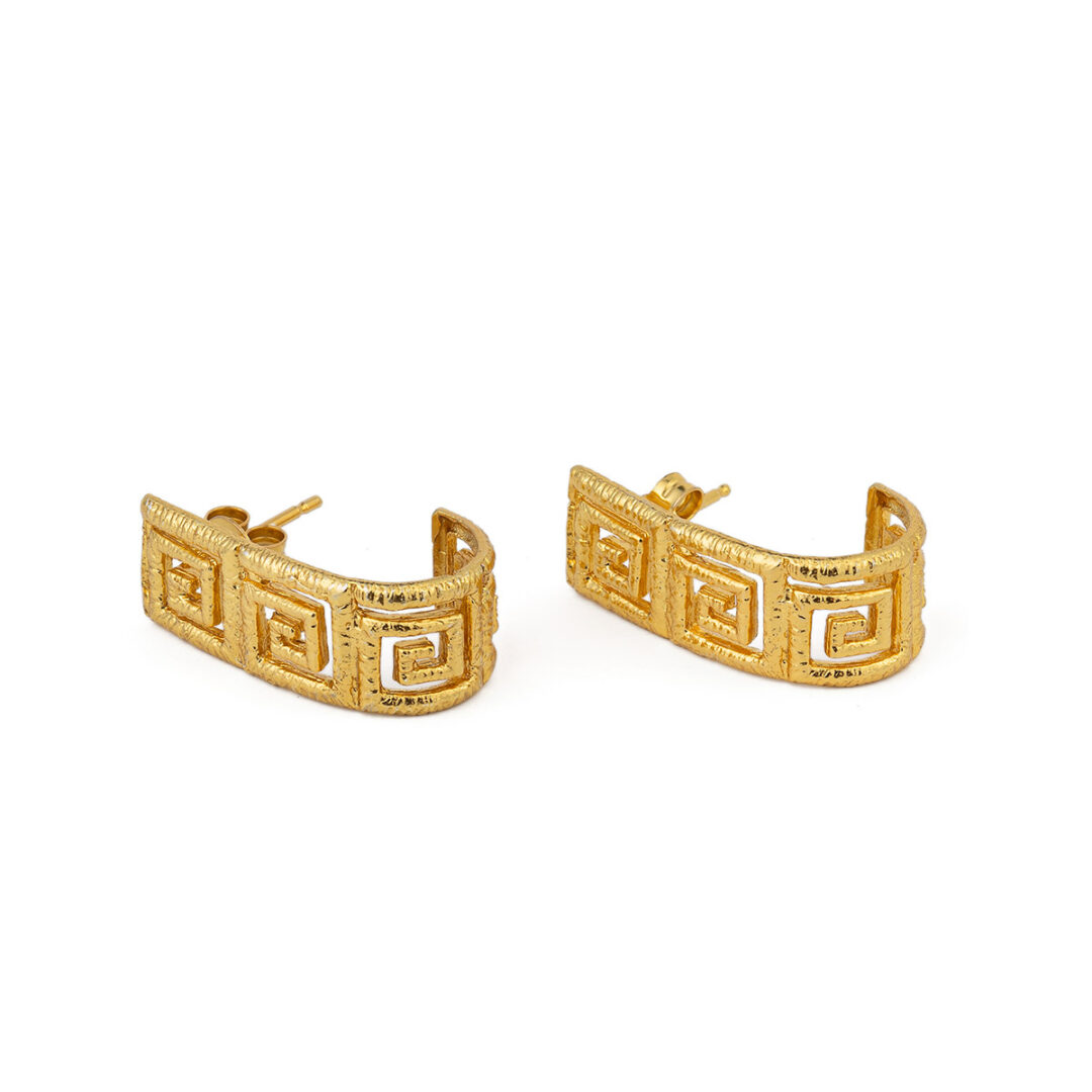 Greek Key Meander Lace Earrings – Sterling Silver Gold Plated
