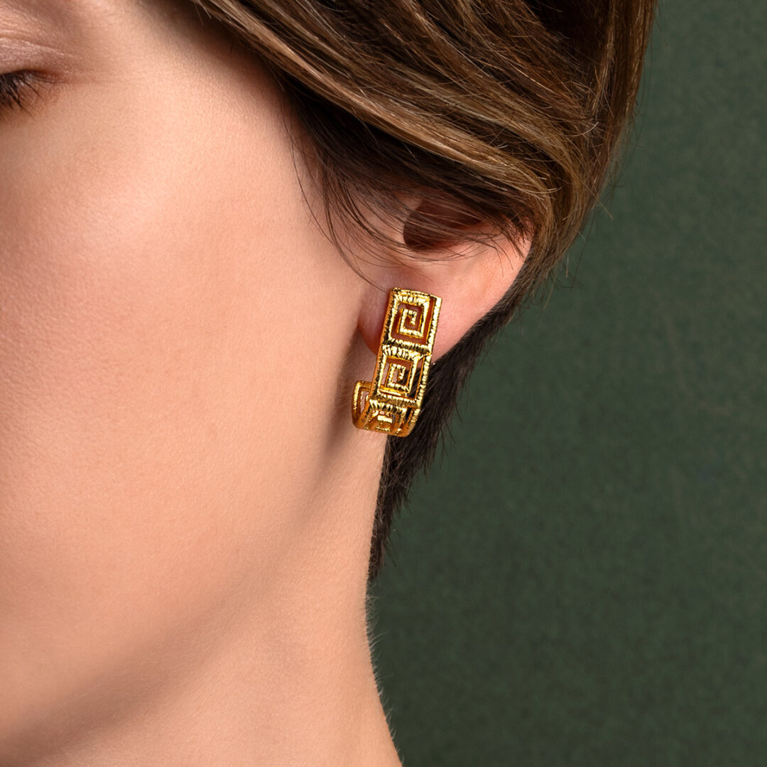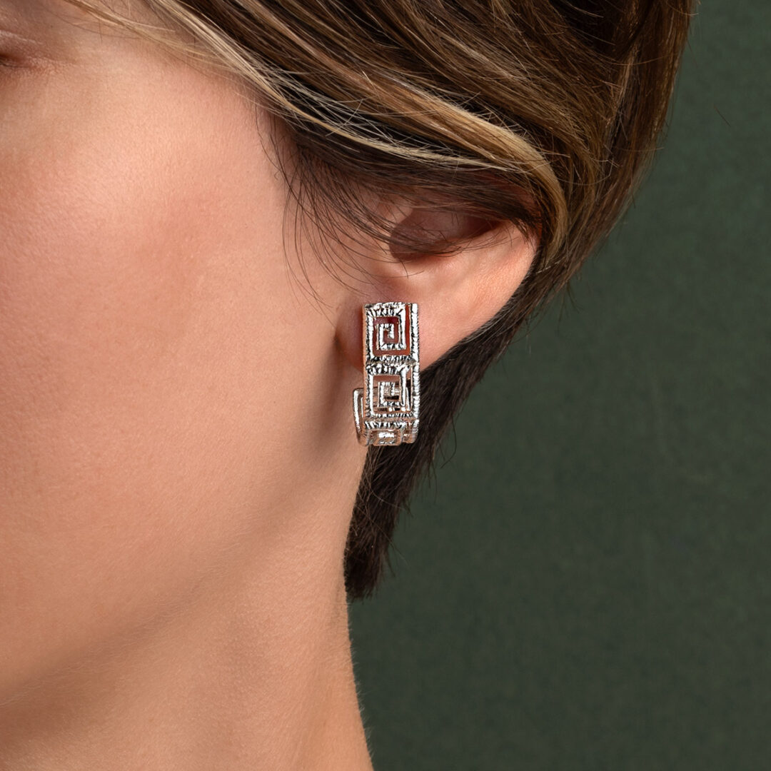 Earrings inspired by the Greek Key meander symbol.