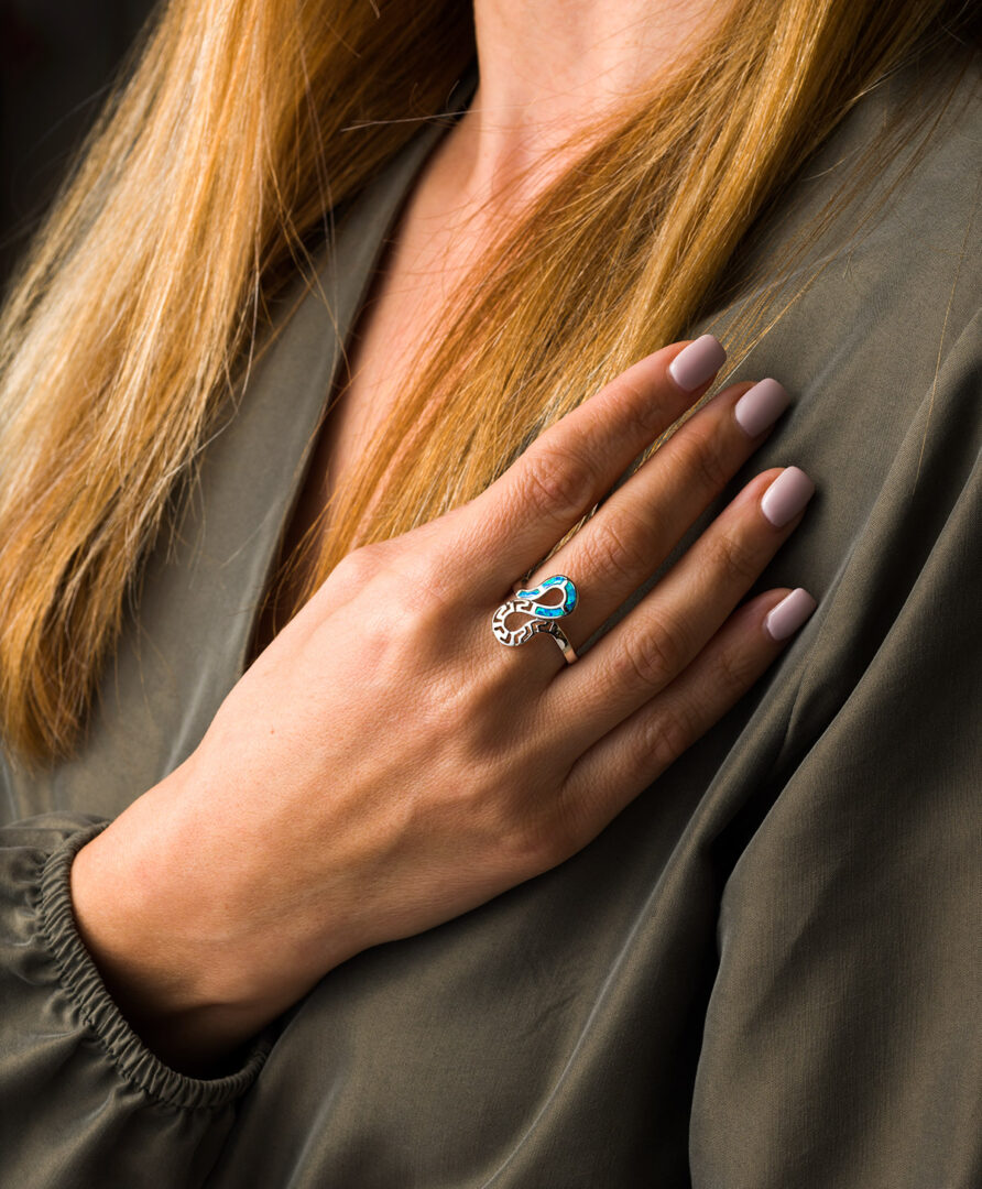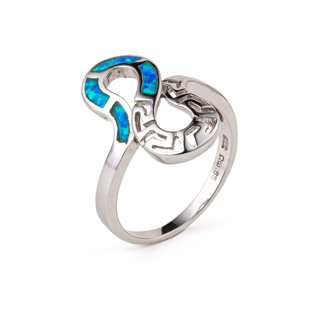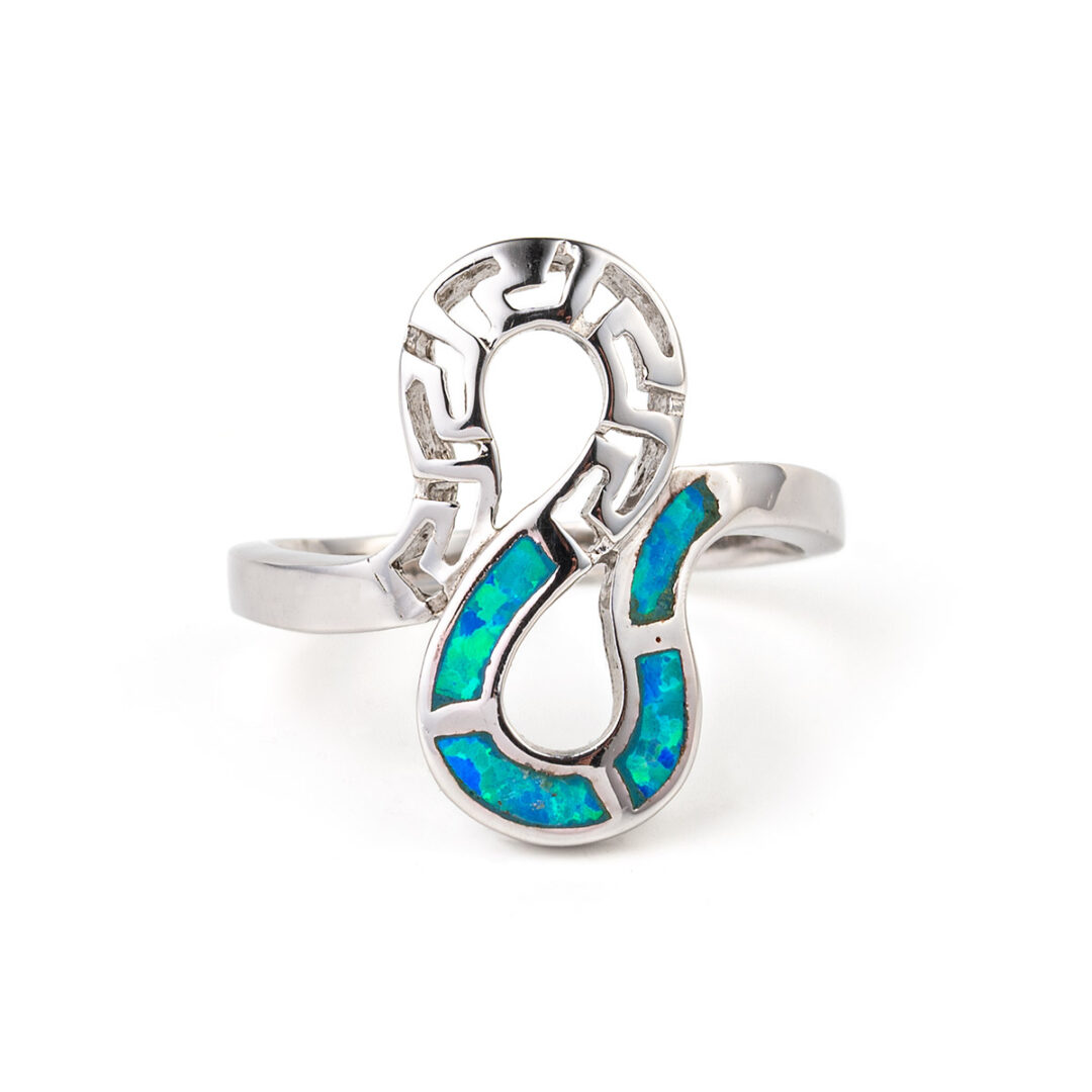Greek Key Opal Ring- 925 Sterling Silver