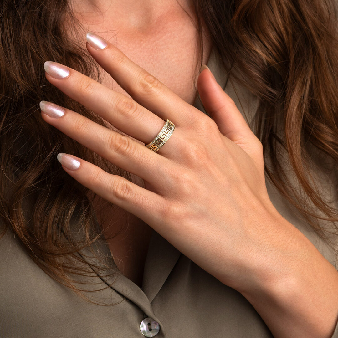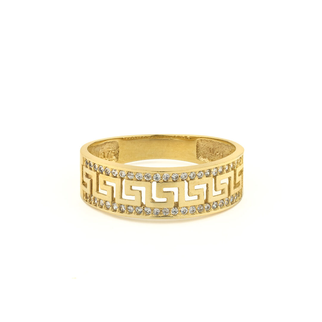 Greek Key Ring with Zircon – 9K Yellow Gold