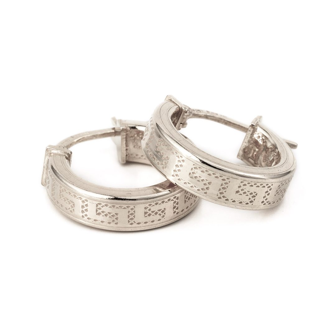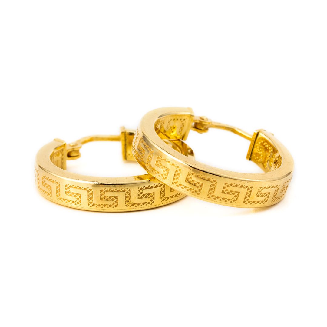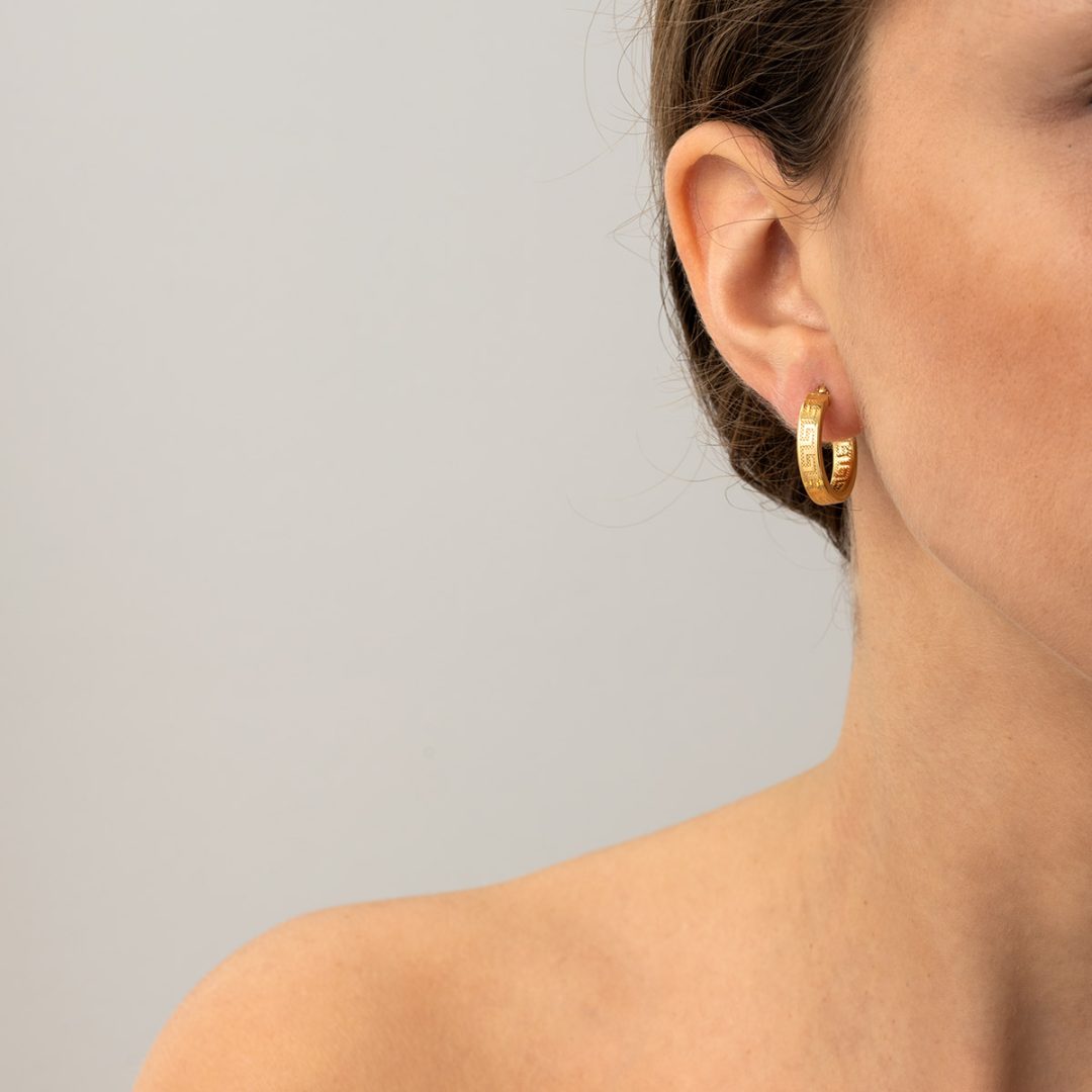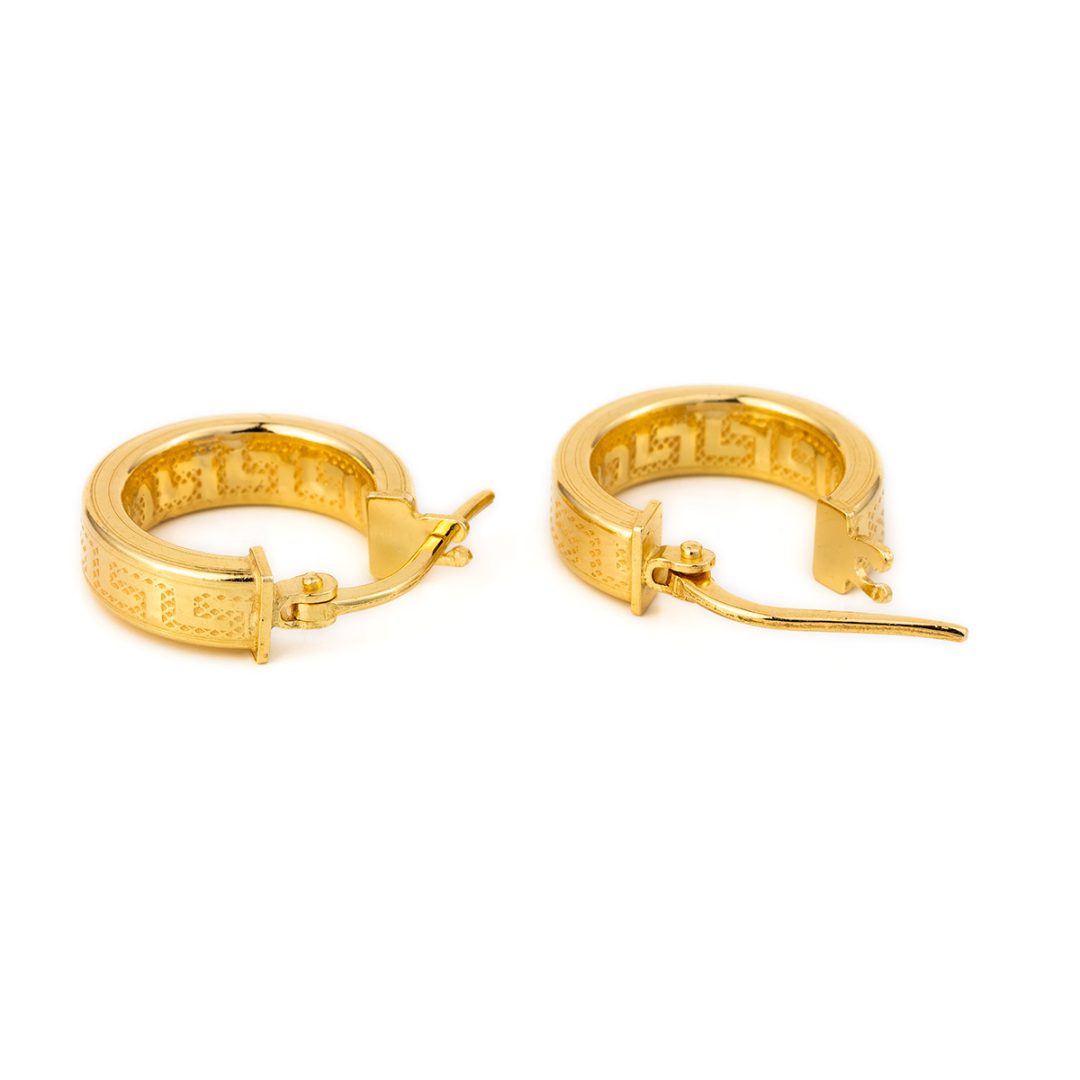 Greek Key Round Hoop Earrings – Sterling Silver & Gold-Plated