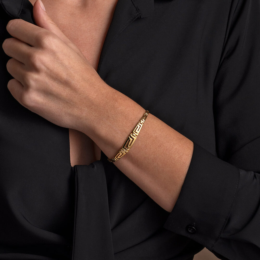 Meandros design is a decorative border constructed from a continuous line, shaped into a repeated motif. Such a design is also called the Greek fret or Greek key design, although these are modern designations. On the one hand, the name “meander” recalls the twisting and turning path of the Meander River in Asia Minor, and on the other hand, as Karl Kerenyi pointed out, “the meander is the figure of a labyrinth in linear form” the meaning is that there is no beginning and no end in some cases so it becomes the symbol of long life and eternity.
