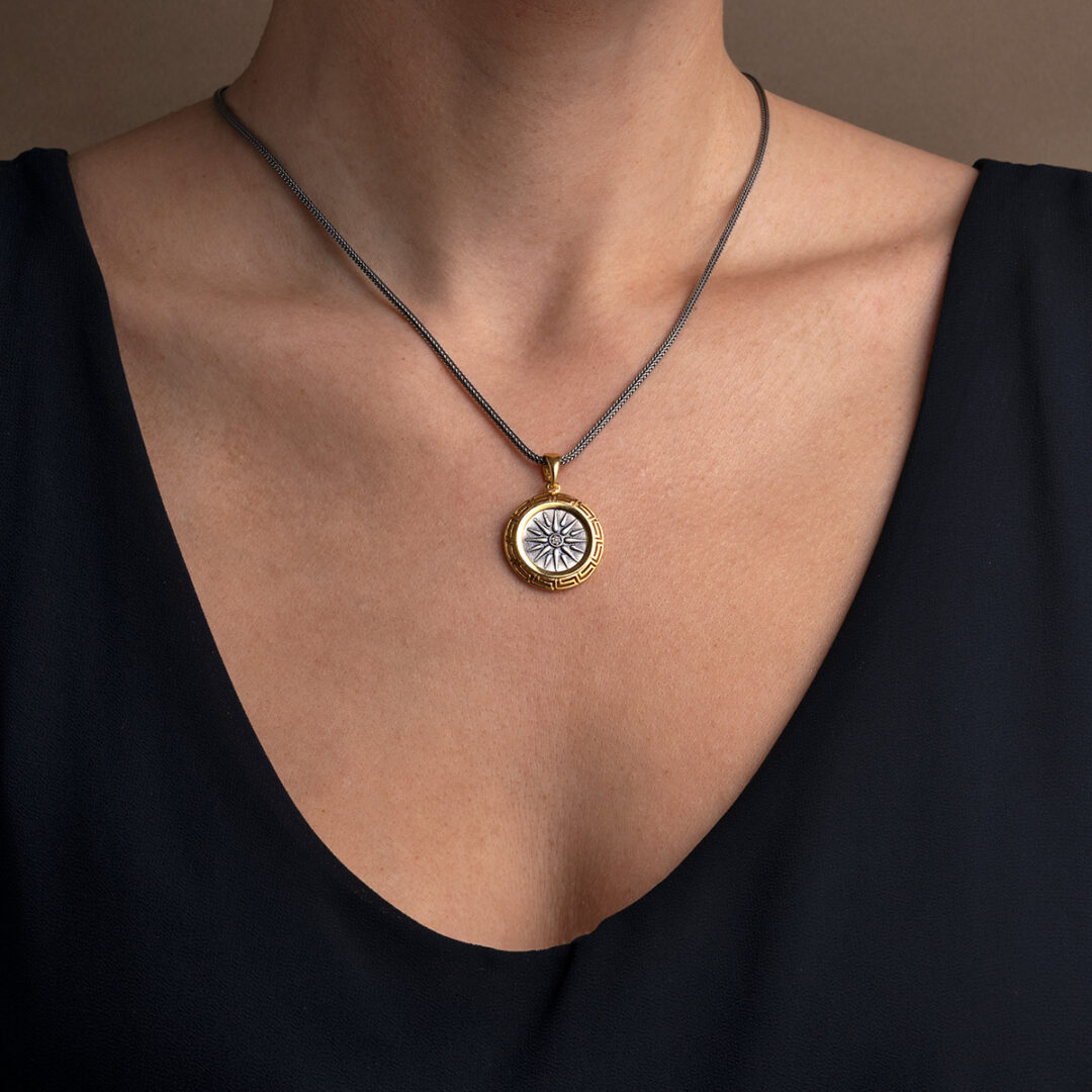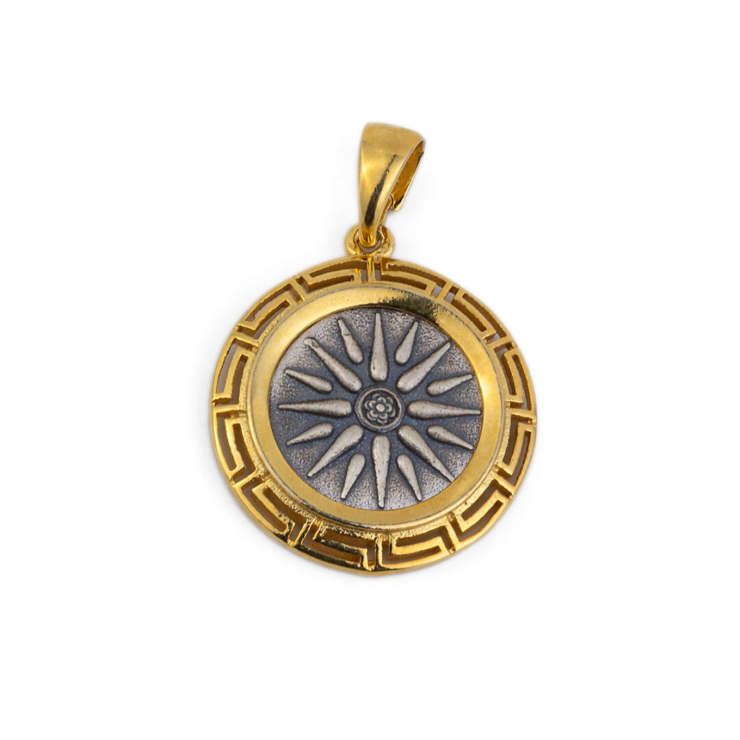 The Vergina Sun also known as the “Star of Vergina”, or “Macedonian Star” is a rayed solar symbol appearing in ancient Greek art. The Vergina Sun proper has sixteen triangular rays. The name “Vergina Sun” became widely used after the archaeological excavations in and around the small town of Vergina, in northern Greece, during the late 1970s. In older references, the name “Argead Star” or “Star of the Argeadai” is used for the Sun as the royal symbol of the dynasty of Macedon. There it was depicted on a golden larnax found in a 4th-century BC royal tomb belonging to either Philip II or Philip III of Macedon, the father and half-brother of Alexander the Great, respectively.