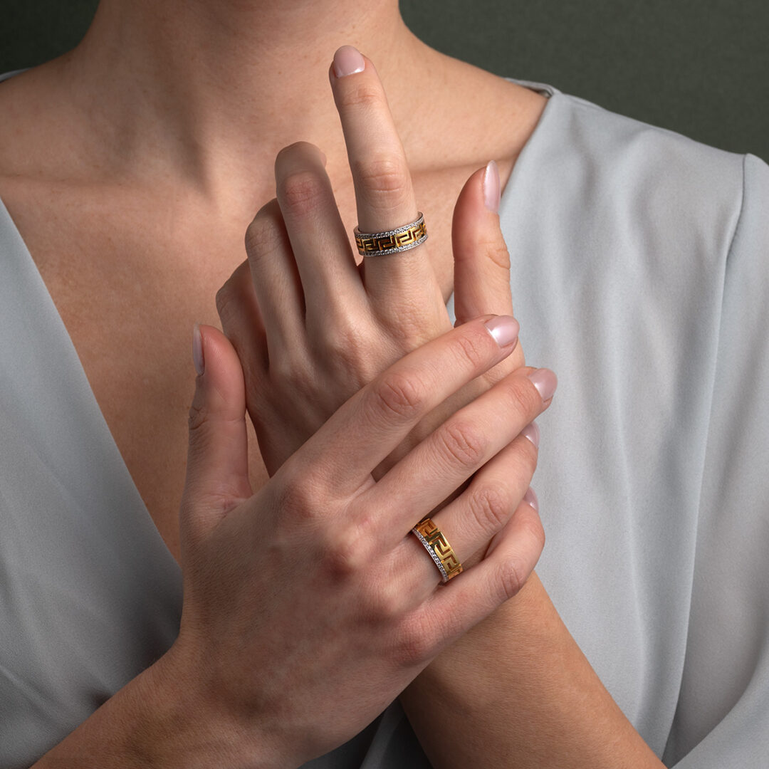 Greek Key Zircon Band Ring – 925 Sterling Silver Gold Plated