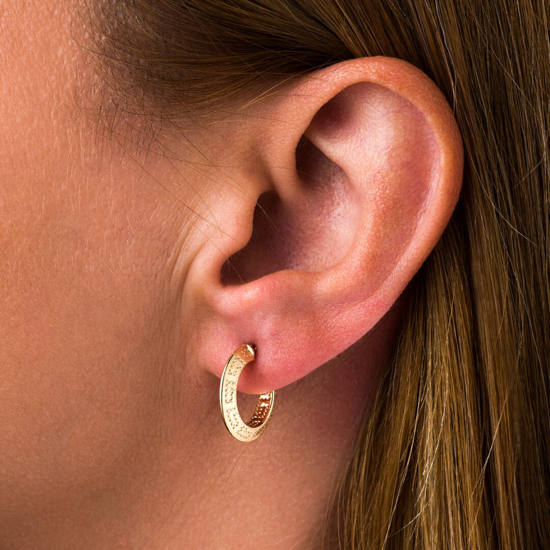 Hoop earrings inspired by the ancient meander, also known as Greek key motif.