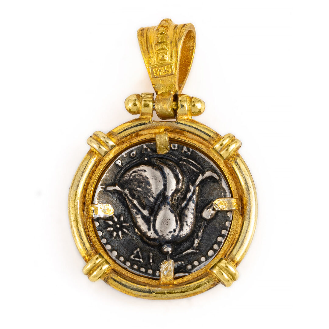 Handmade pendant, inspired by an ancient Greek tetradrachm coin of Rhodes.