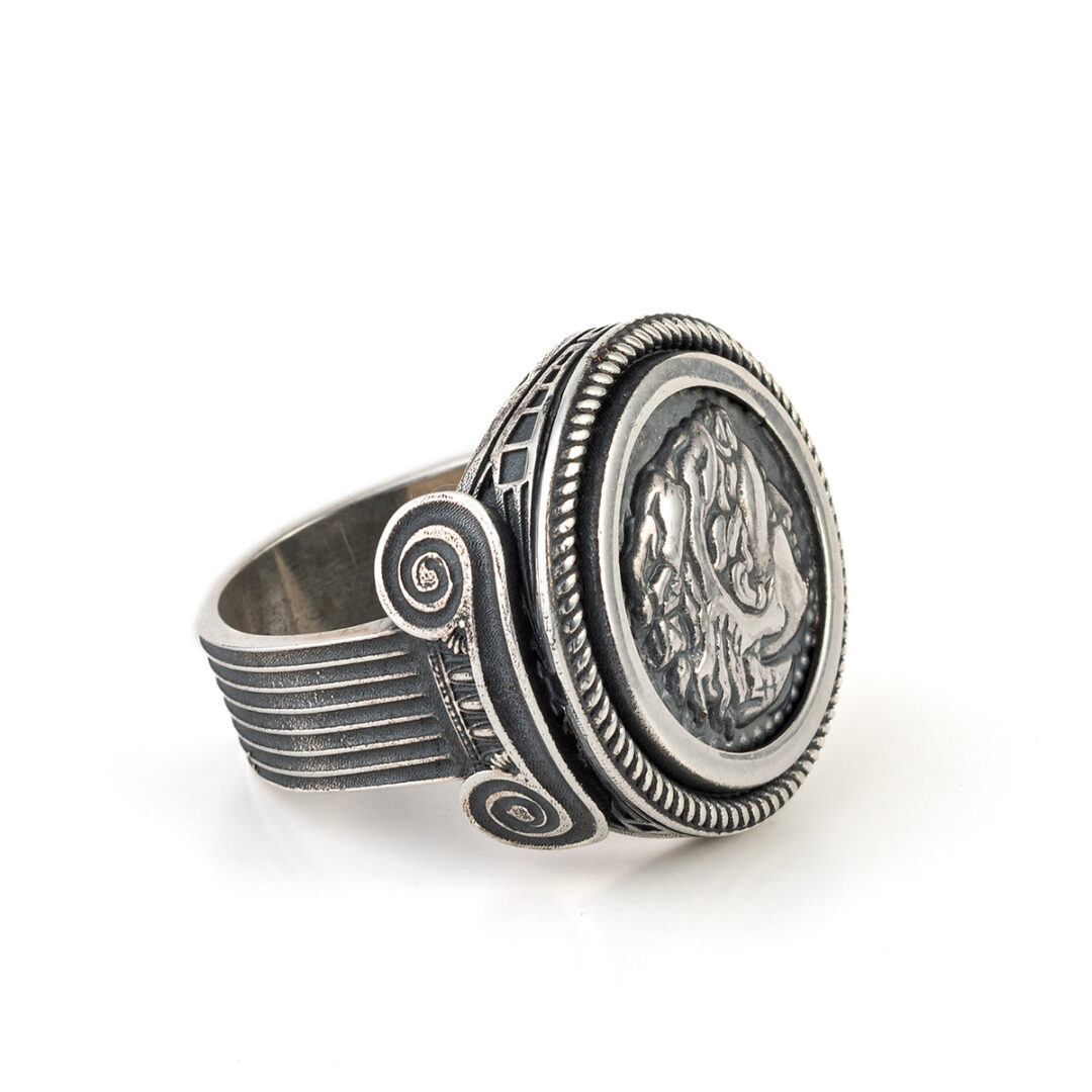 Handmade ring inspired by the ancient Greek tetradrachm coin, depicting Hercules.