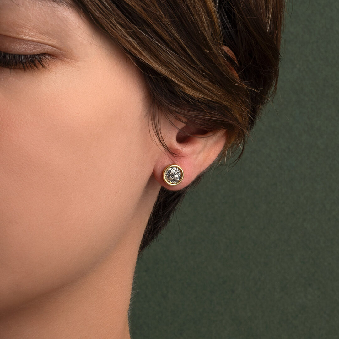 Hercules Coin Earrings – 14K Gold and Sterling Silver
