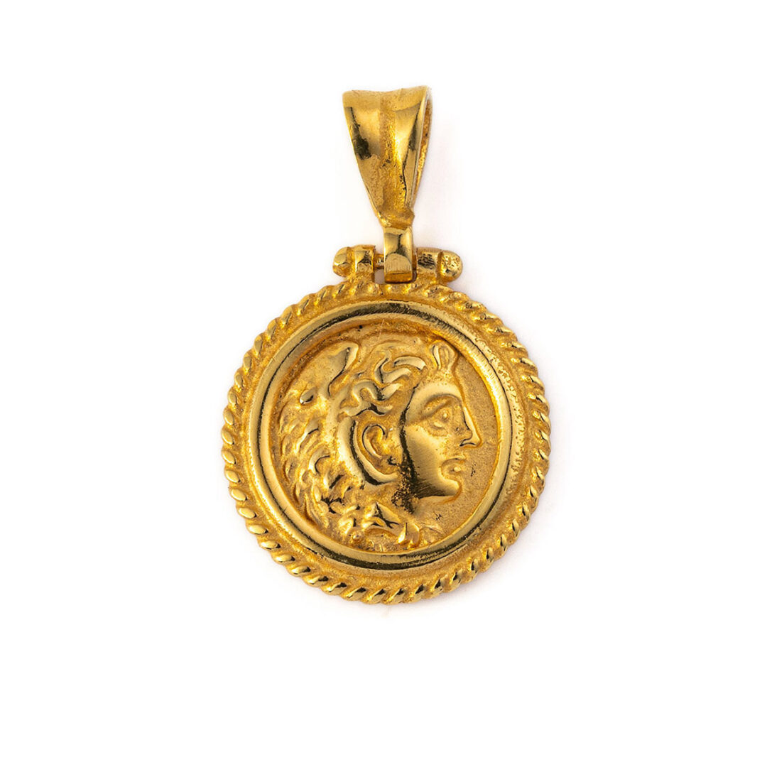 Handmade pendant inspired by the ancient Greek tetradrachm coin, depicting Hercules.